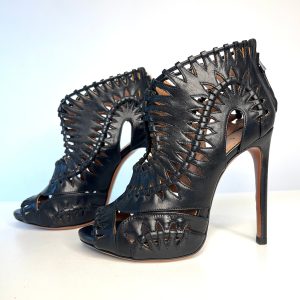 Alaia Black Leather Laser-Cut Peep-Toe Heels 35 UK2 – Preloved
