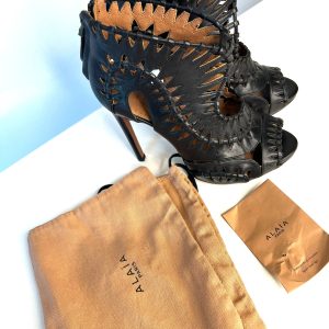 Be the first to review “Alaia Black Leather Laser-Cut Peep-Toe Heels 35 UK2 – Preloved” Cancel reply