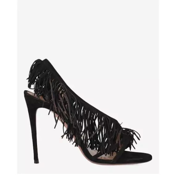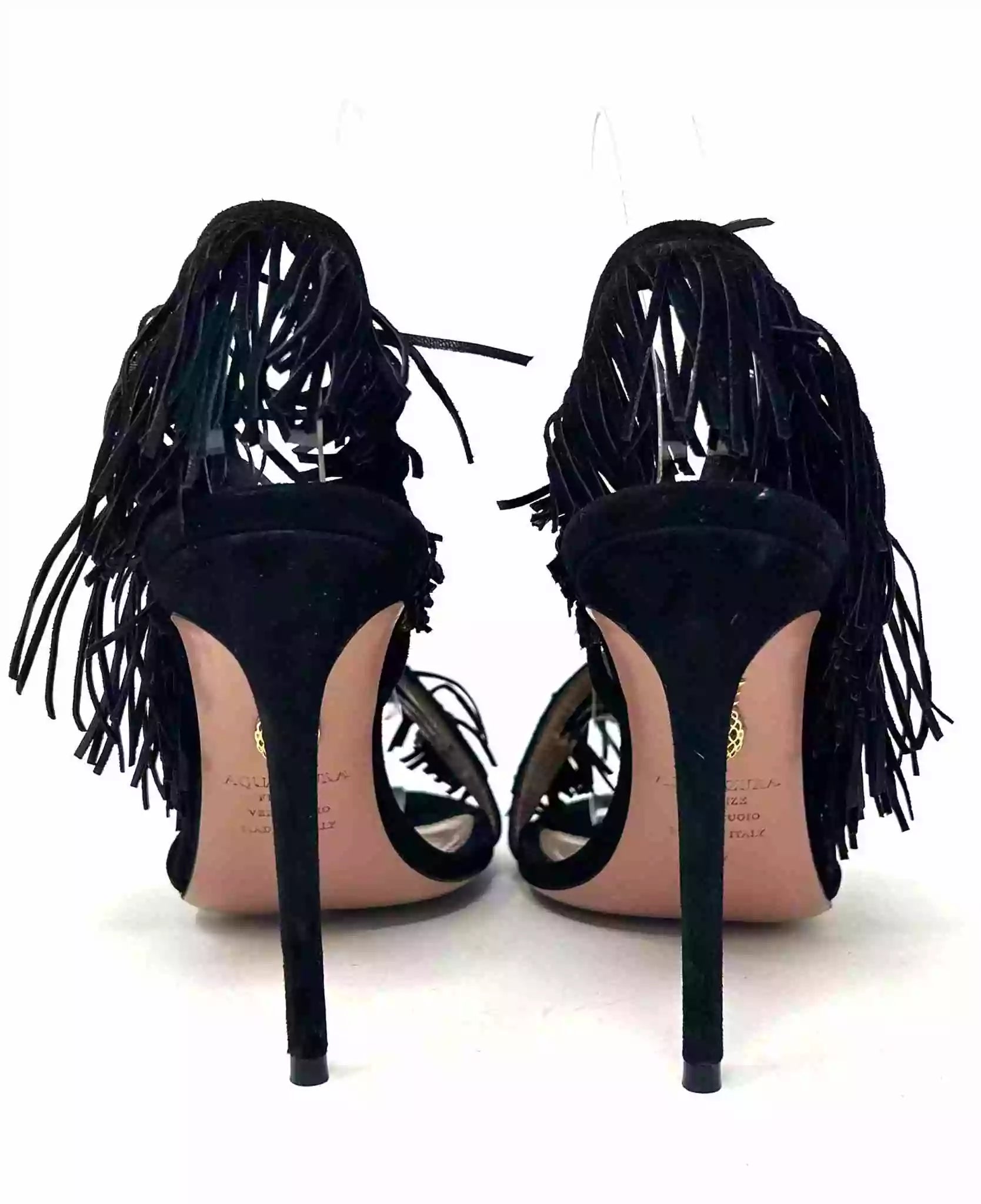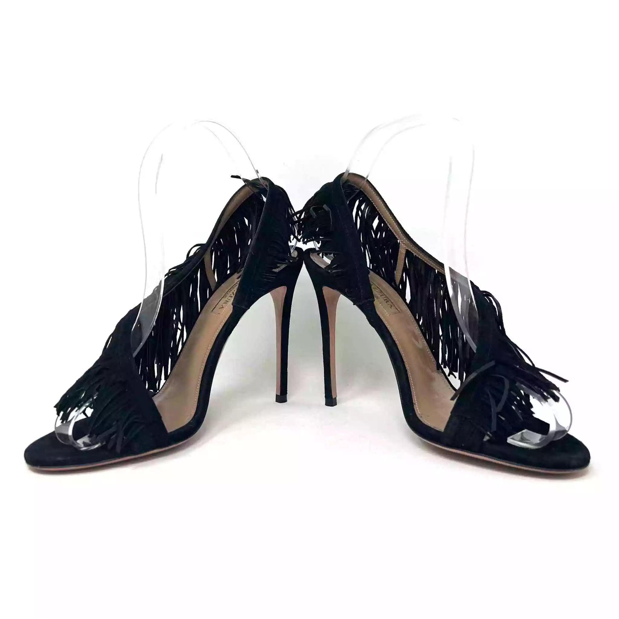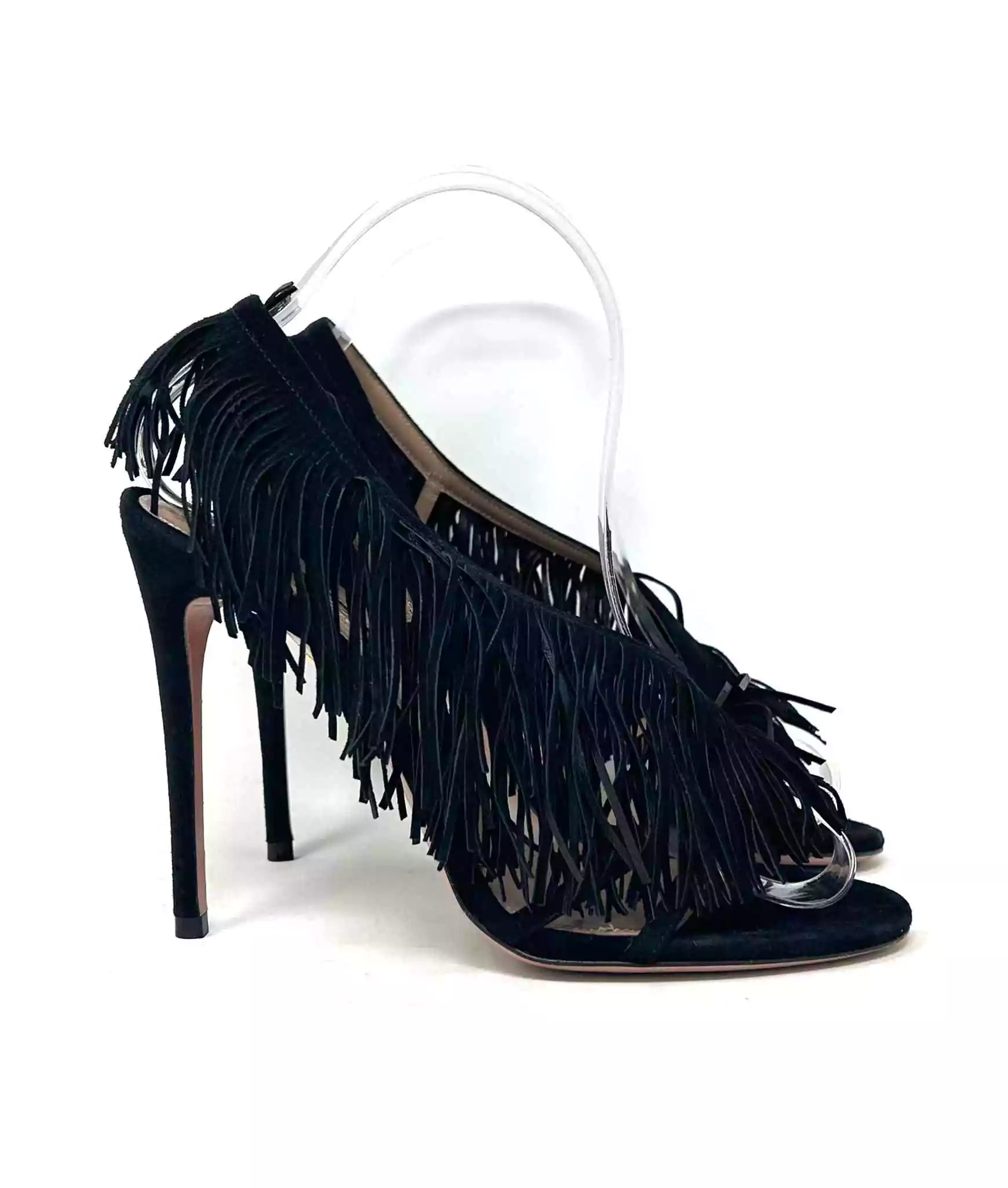 Aquazzura Wild Fringe Black Suede Heel Sandal Heels 37 UK 4