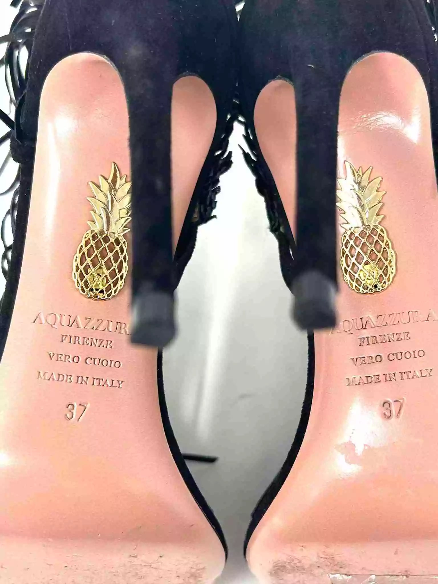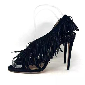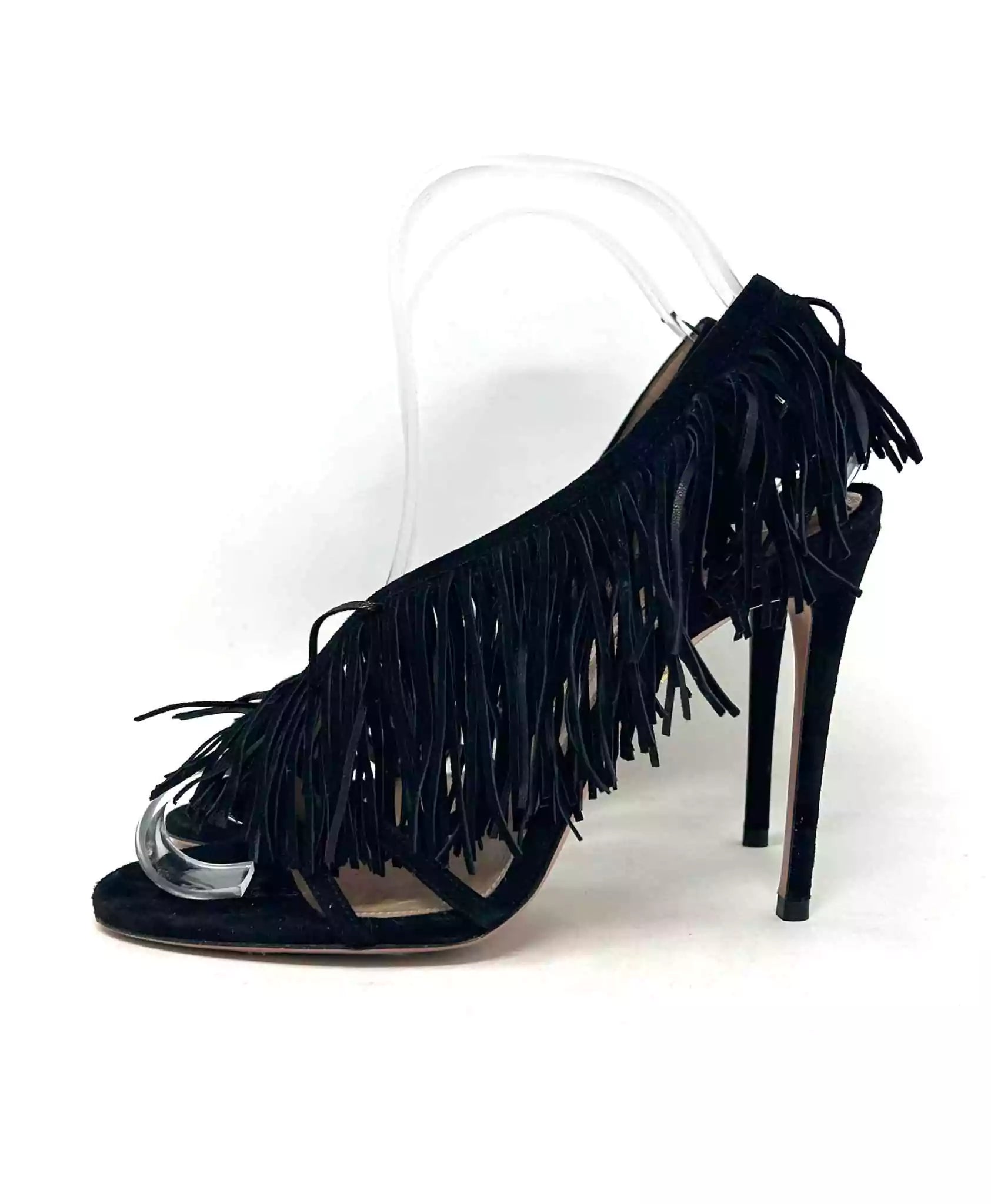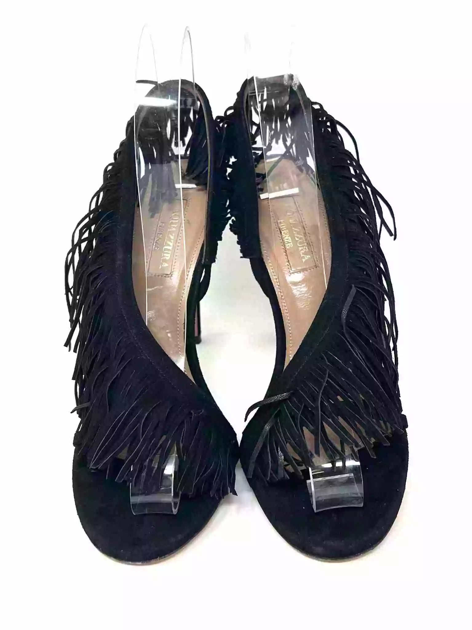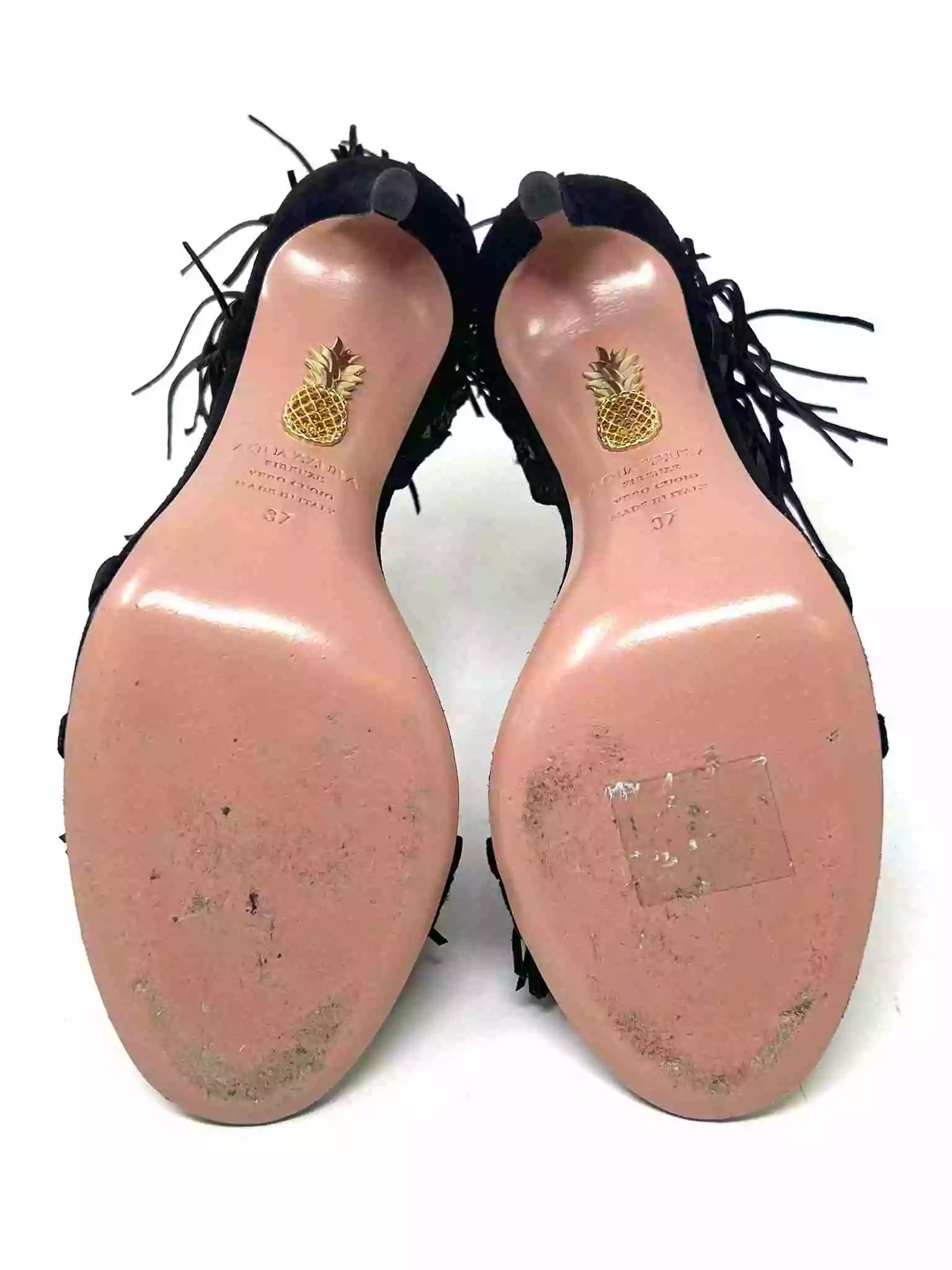 Aquazzura Wild Fringe Black Suede Heel Sandal Heels 37 UK 4