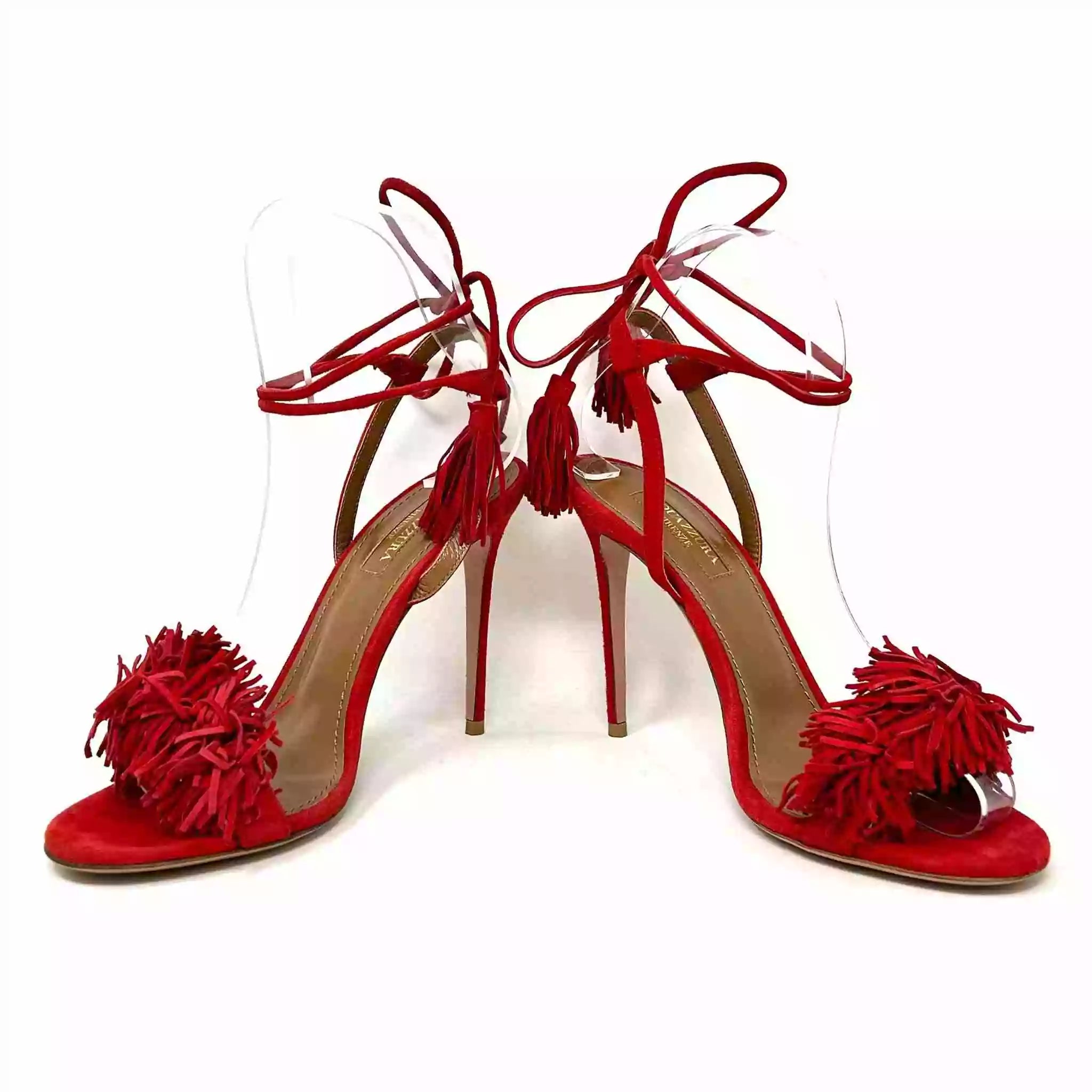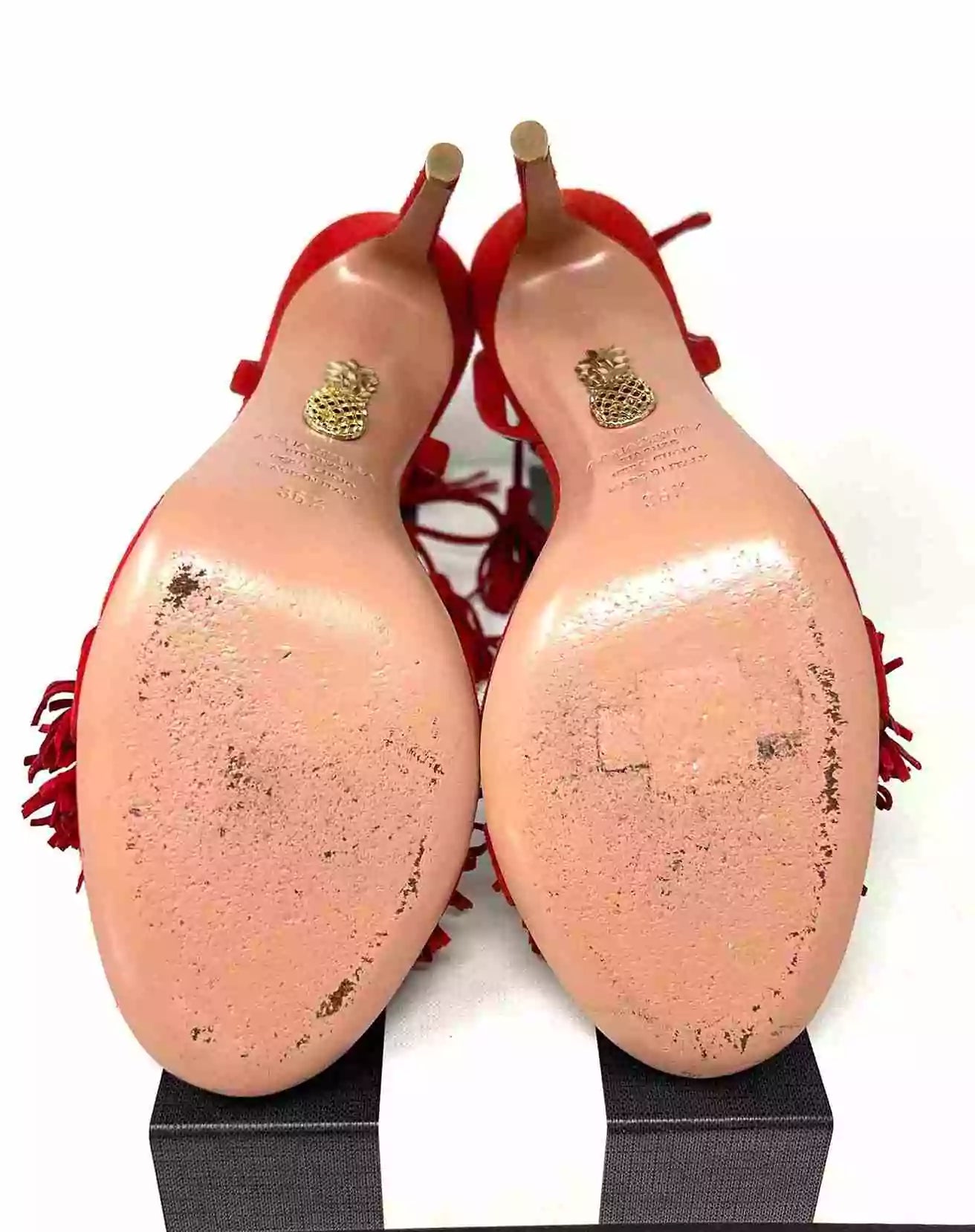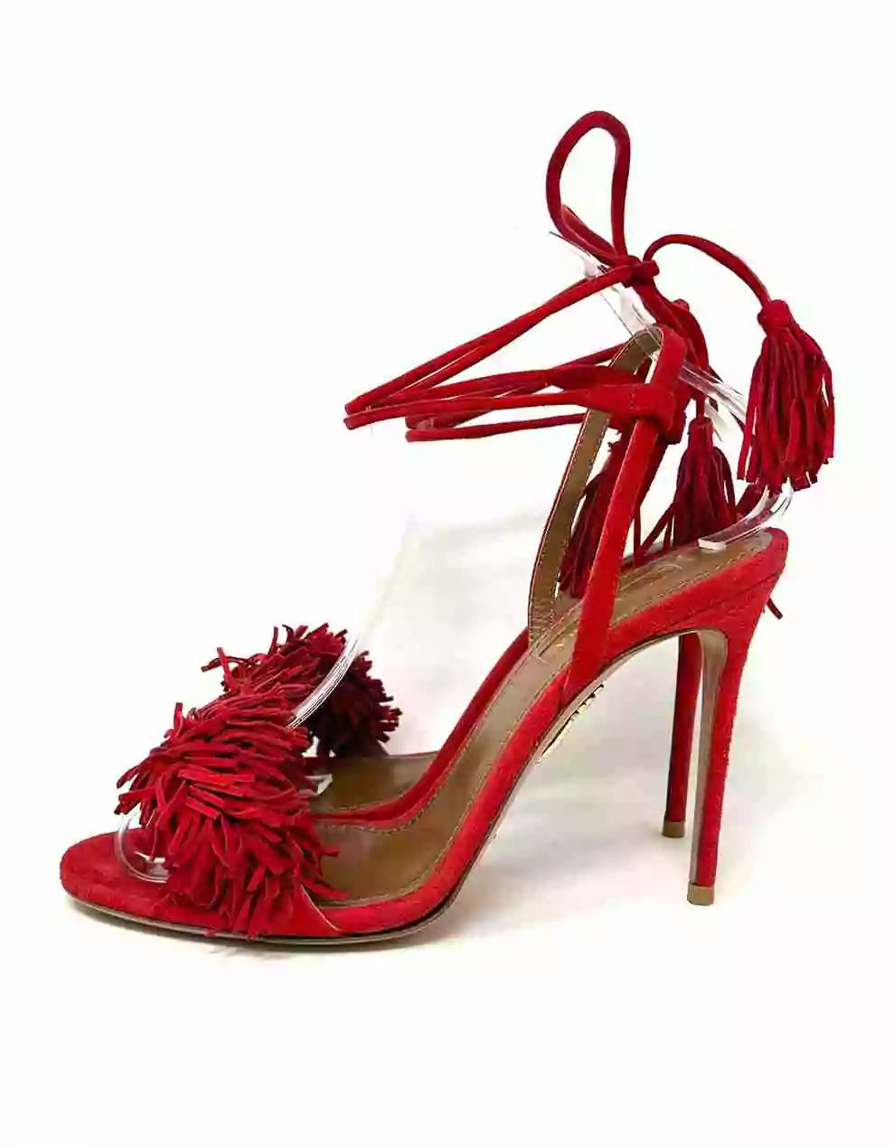 Aquazzura Wild Thing 105 Red Suede Fringed Tassel Heels Sandals 36.5 UK 3.5