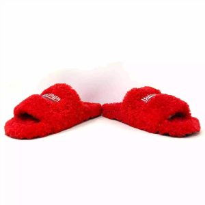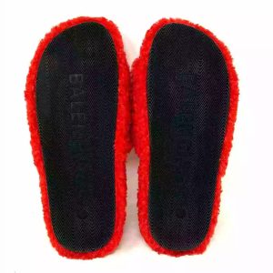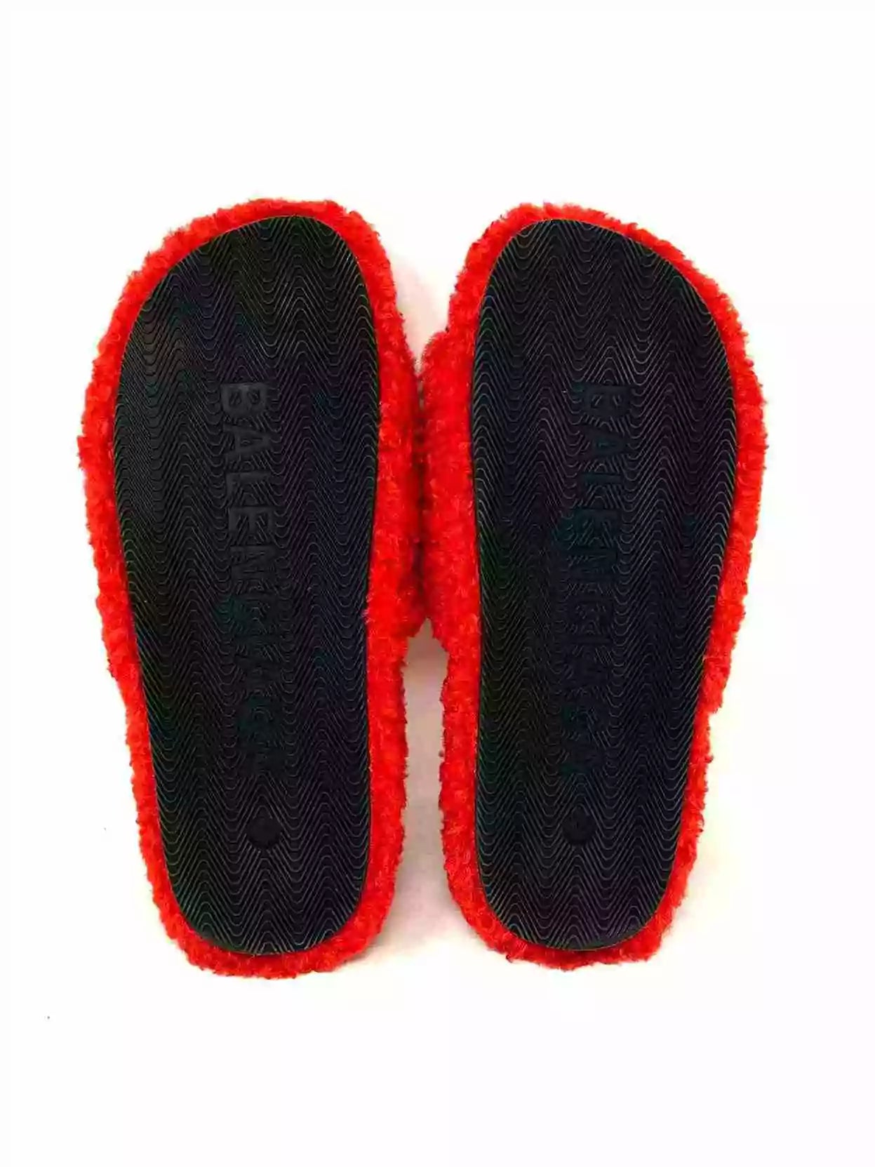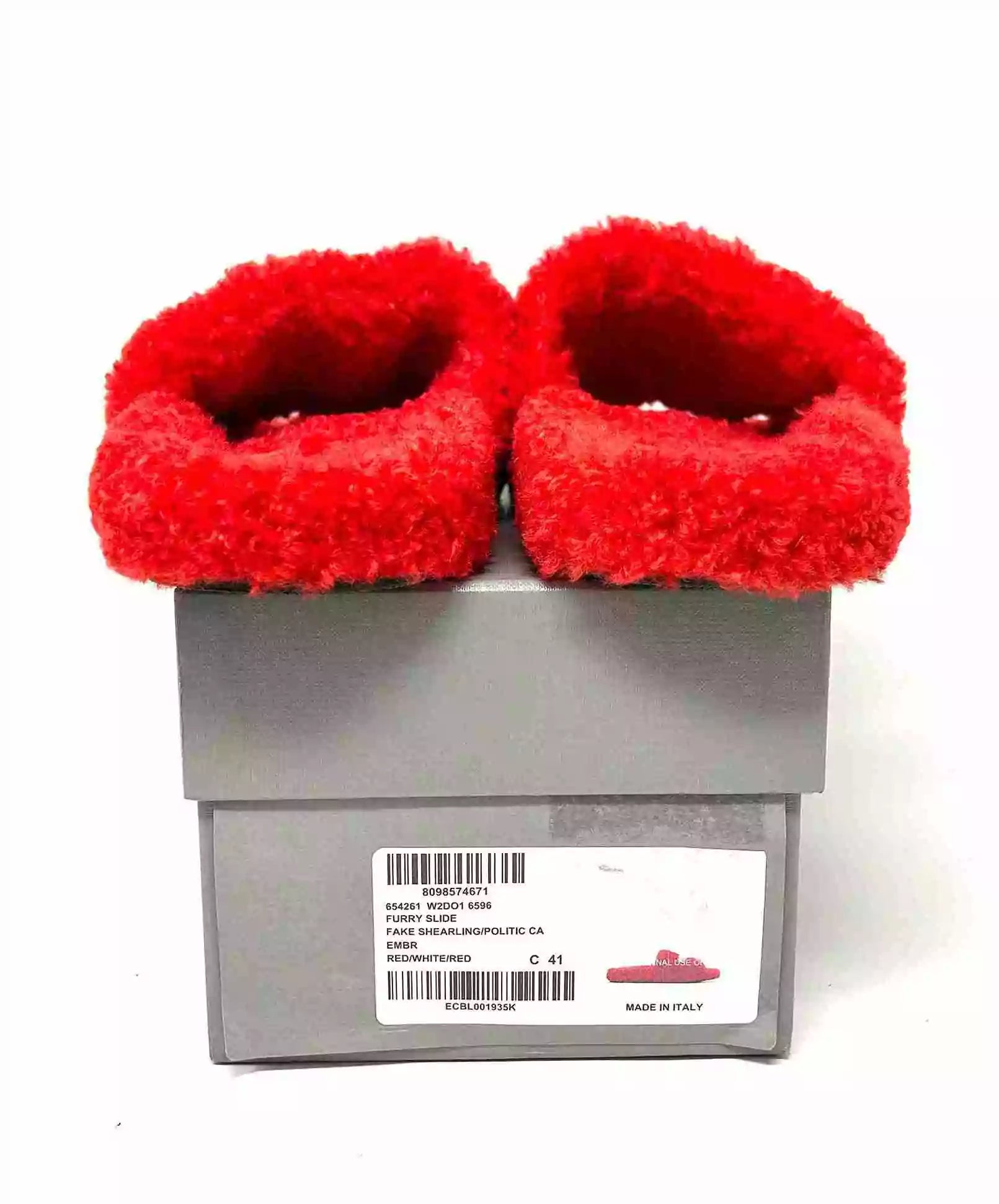 Balenciaga Furry Slipper Red Faux Shearling Logo Flat Mule Sandals 41 UK 8