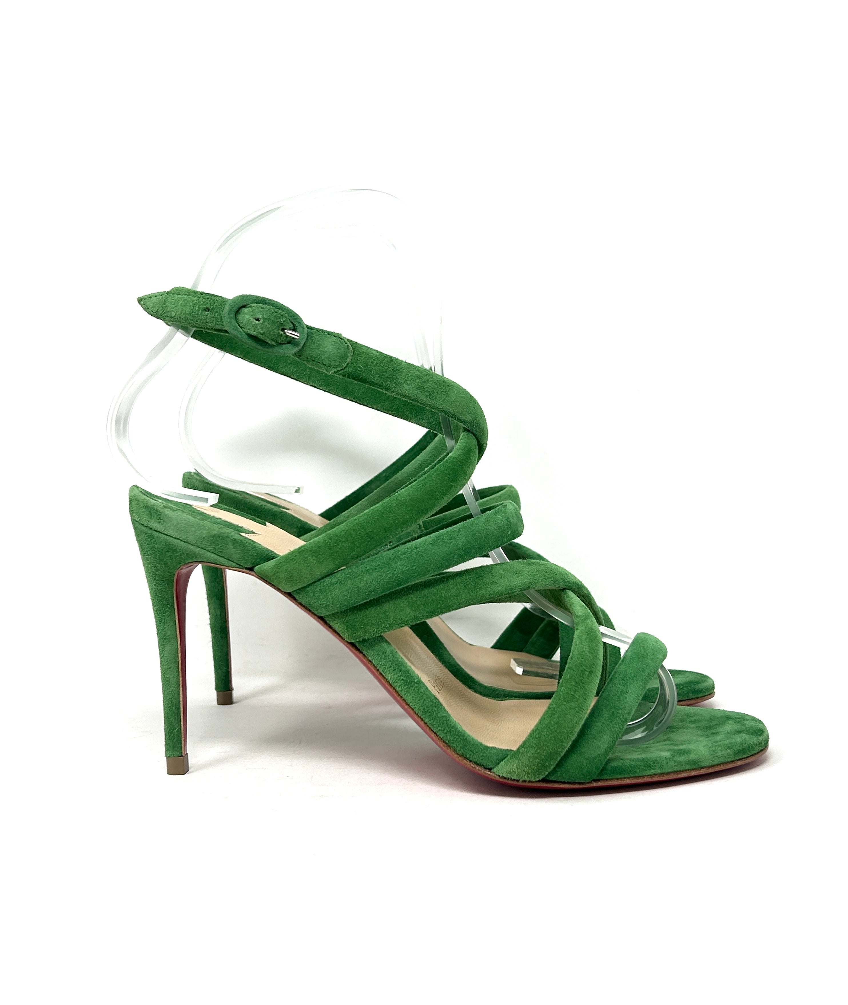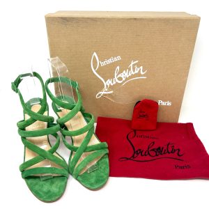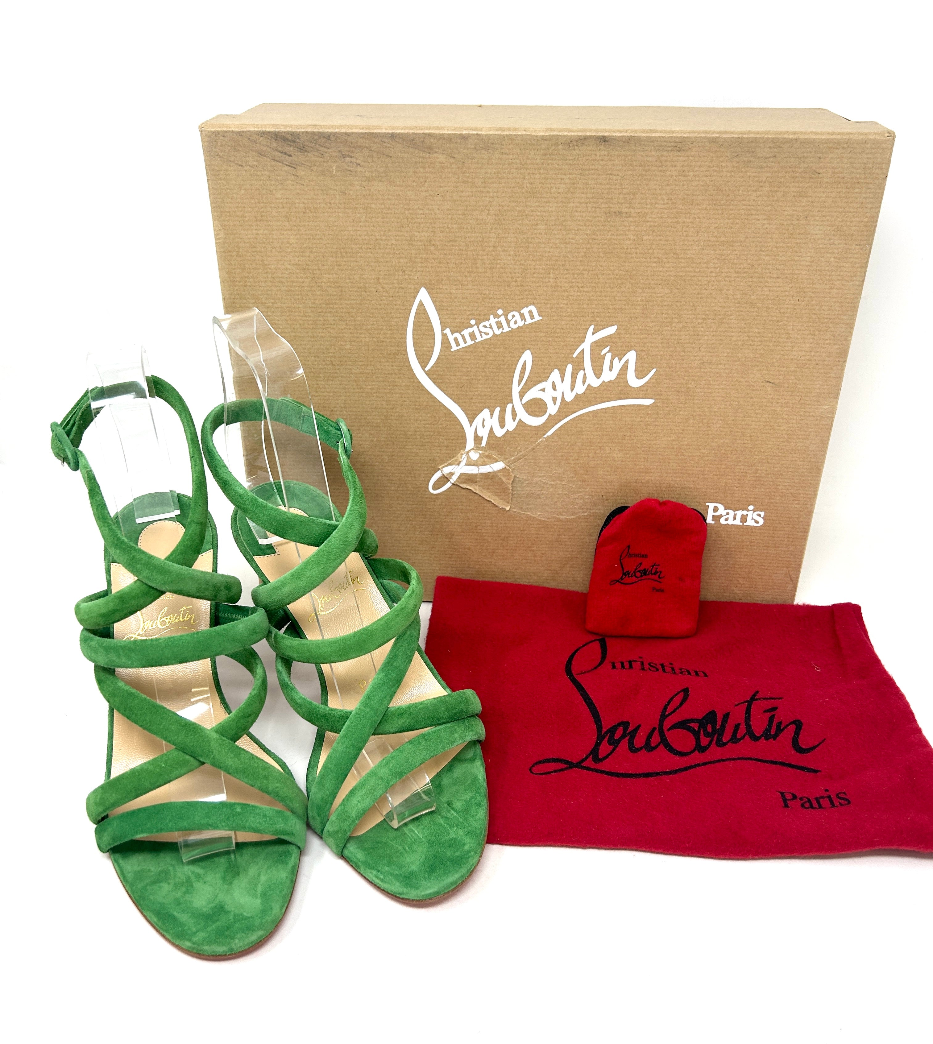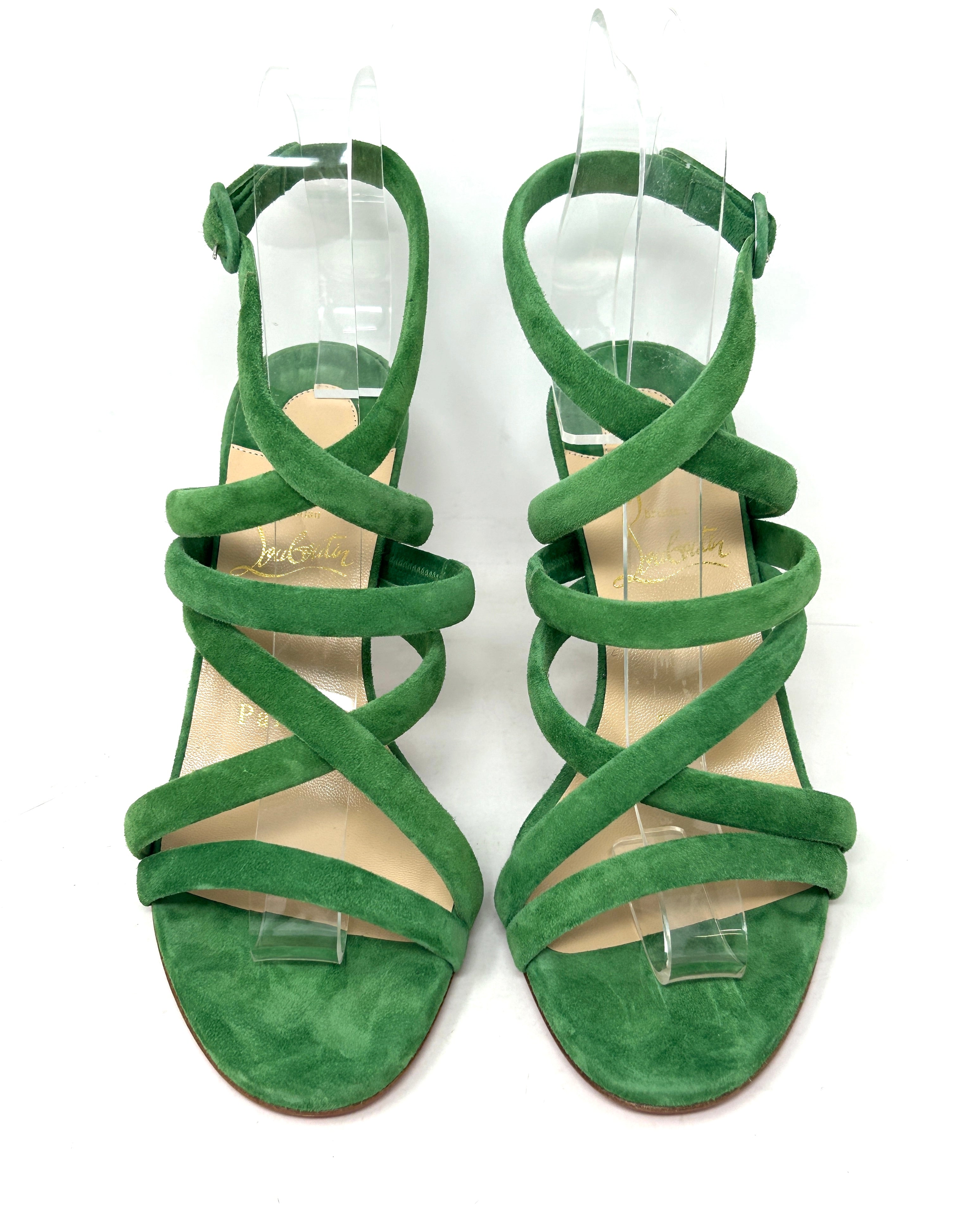 Tags: Christian Louboutin, Christian Louboutin heels, green, heel sandals, Heels, High Heel Hierarchy, High heels, never worn, new, red soles, Sandals, strappy, strappy heels, suede, Suede heels, suede leather, suede sandals