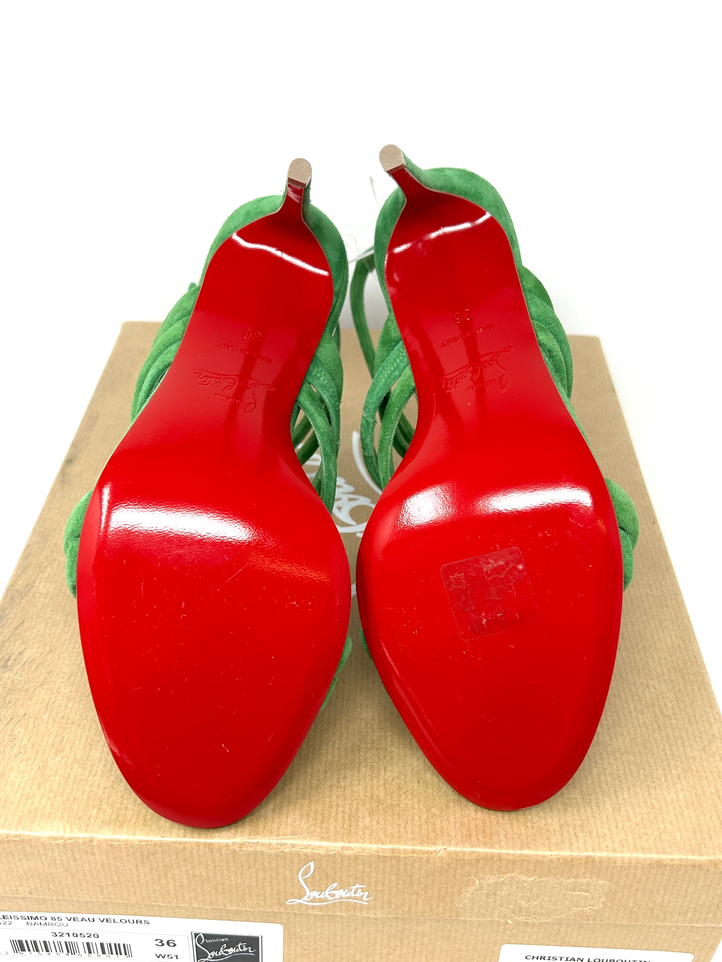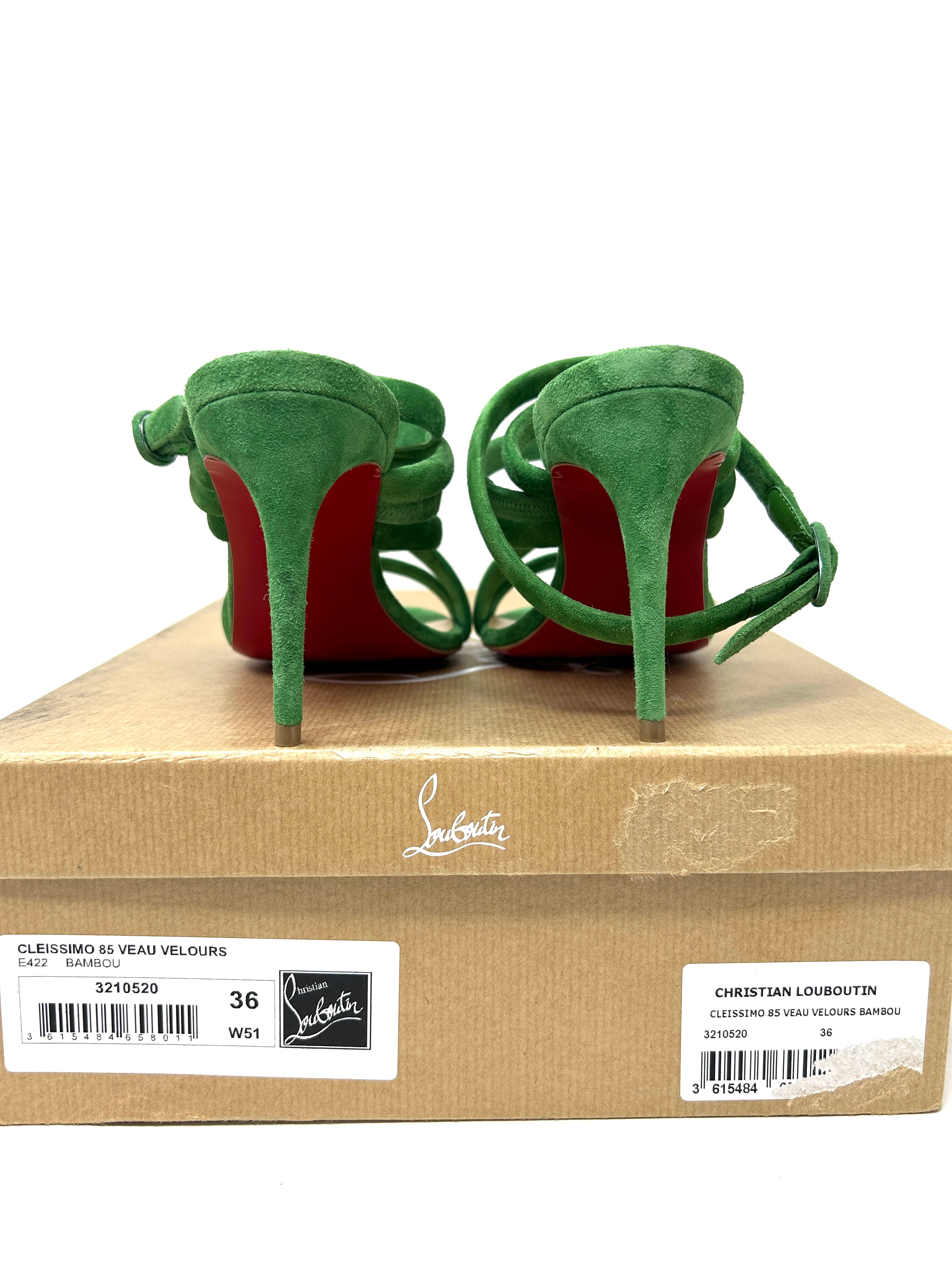 Christian Louboutin Cleissimo 85 Bambou Green Suede Leather Heel Sandals 36 UK 3