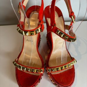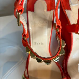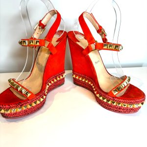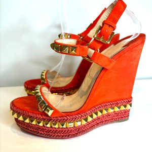 Be the first to review “Christian Louboutin Cataclou Suede Orange Gold Studded Wedge Sandals 40 UK7” Cancel reply