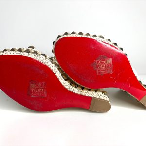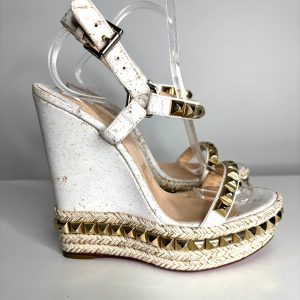 Be the first to review “Christian Louboutin Cataclou White/Light Gold Wedge Sandals 38 UK5” Cancel reply