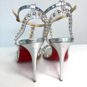 Tags: bridal heels, buy pre-loved sandals, Christian Louboutin, heel sandals, Heels, new, Sandals, shoes, Silver heels, wedding heels
