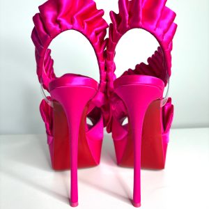 Be the first to review “Christian Louboutin Froufrou Alta 150 Pink Satin Platform Heels Sandals 38 UK5” Cancel reply
