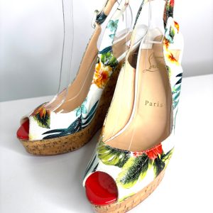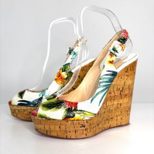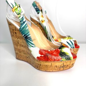 Christian Louboutin Hawaii Une Plume 140 Floral Slingback Wedge Sandals small fit 39.5 UK6.5 – Preloved