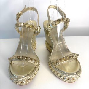 Tags: buy pre-loved sandals, Christian Louboutin, gold heels, heel sandals, never worn, new, red bottom boots, red bottoms, Sandals, wedged sandals