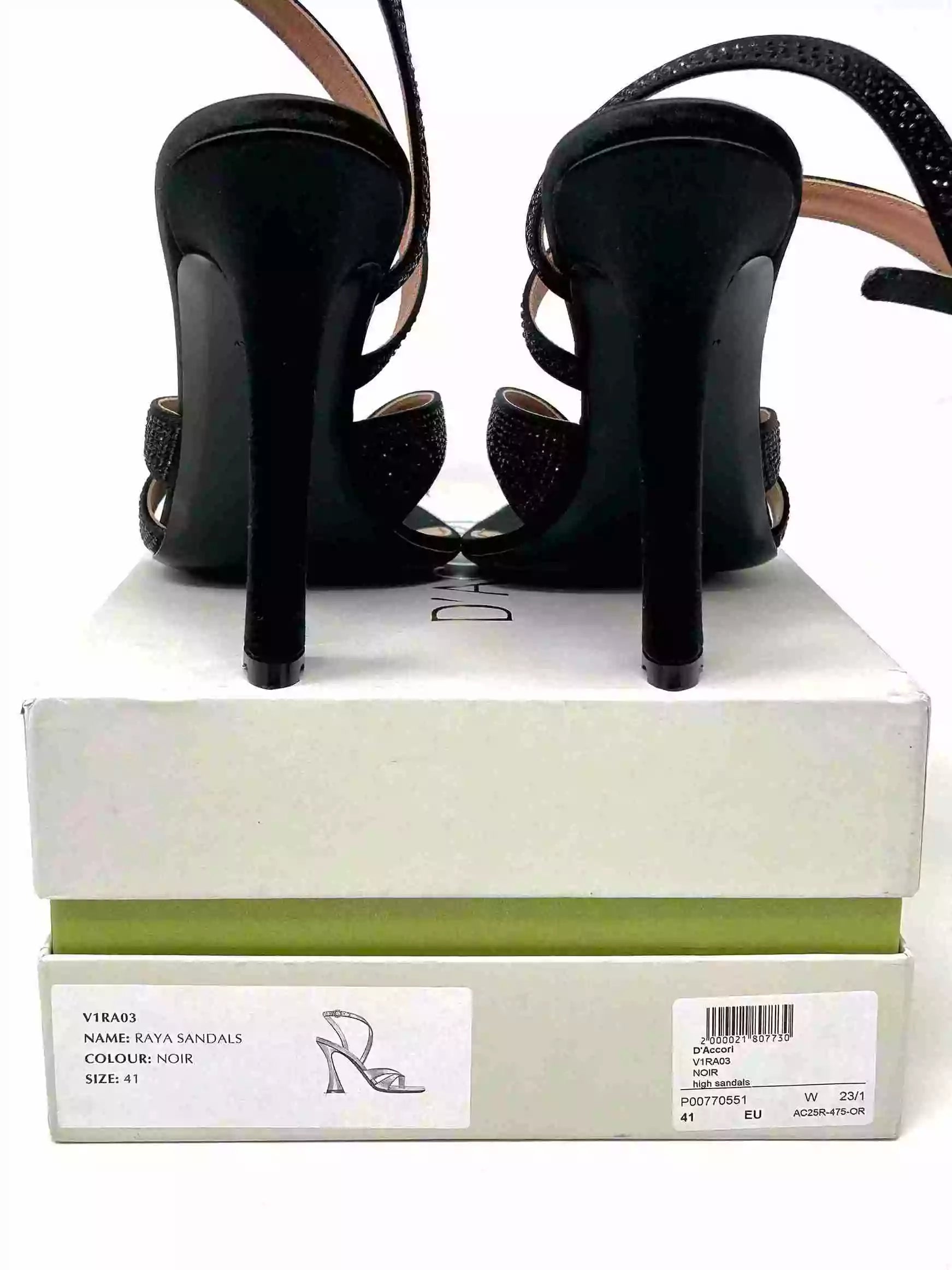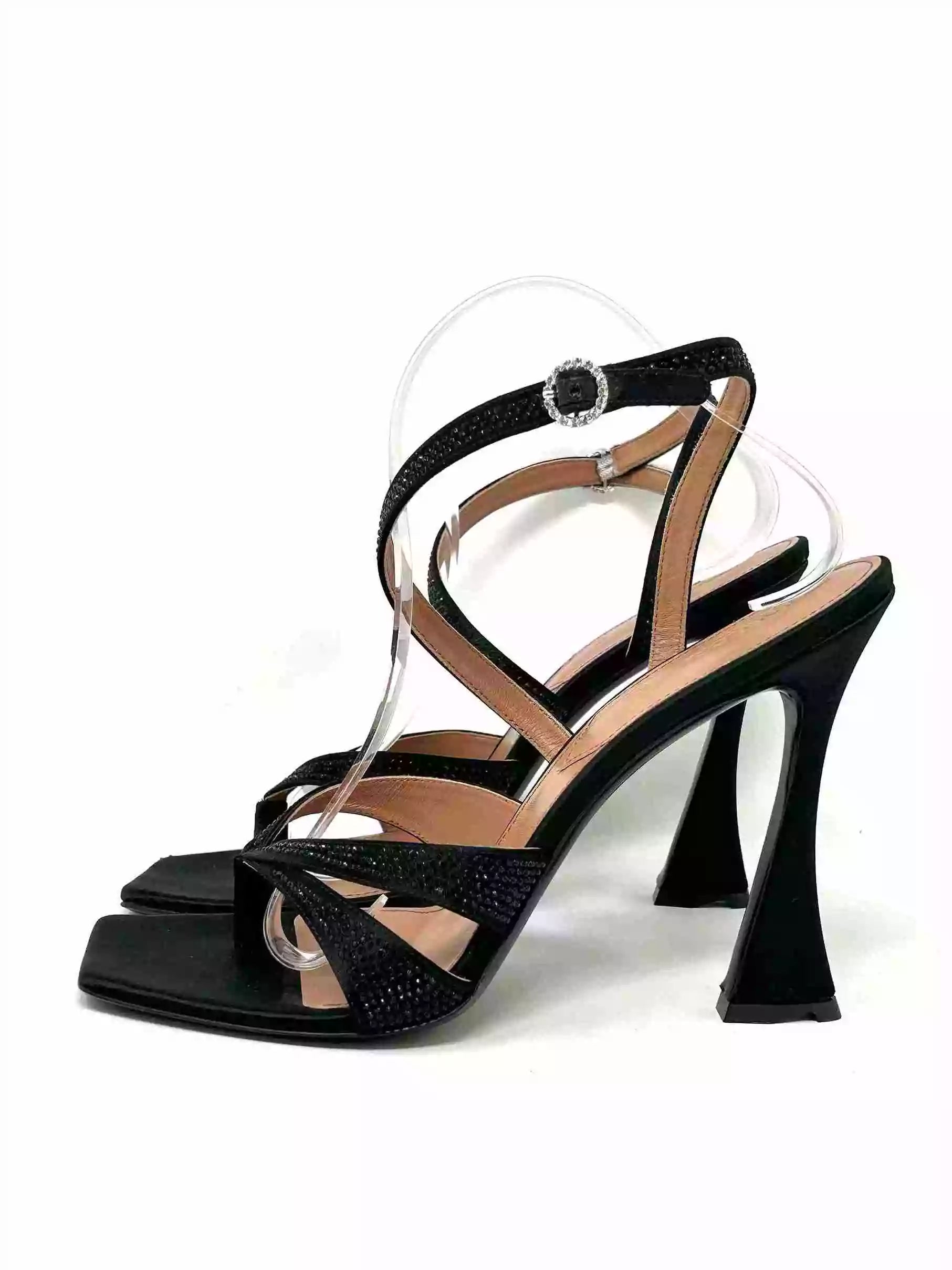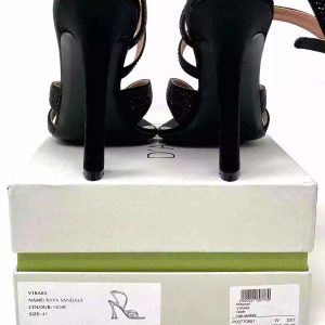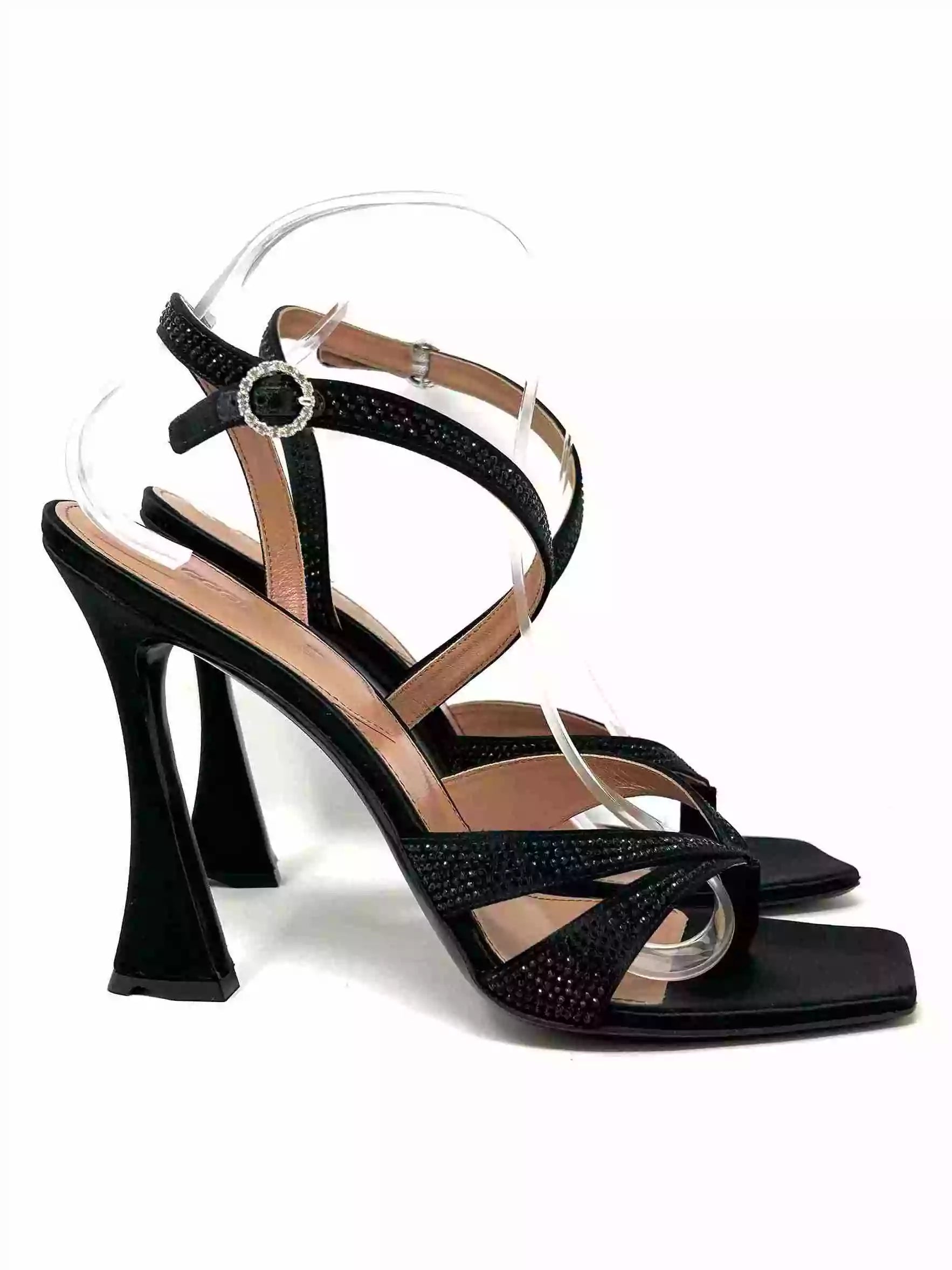 D’Accori Black Raya 100 Crystal Embellished Satin Heel Sandals 41 UK 8