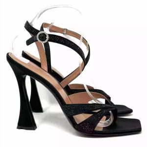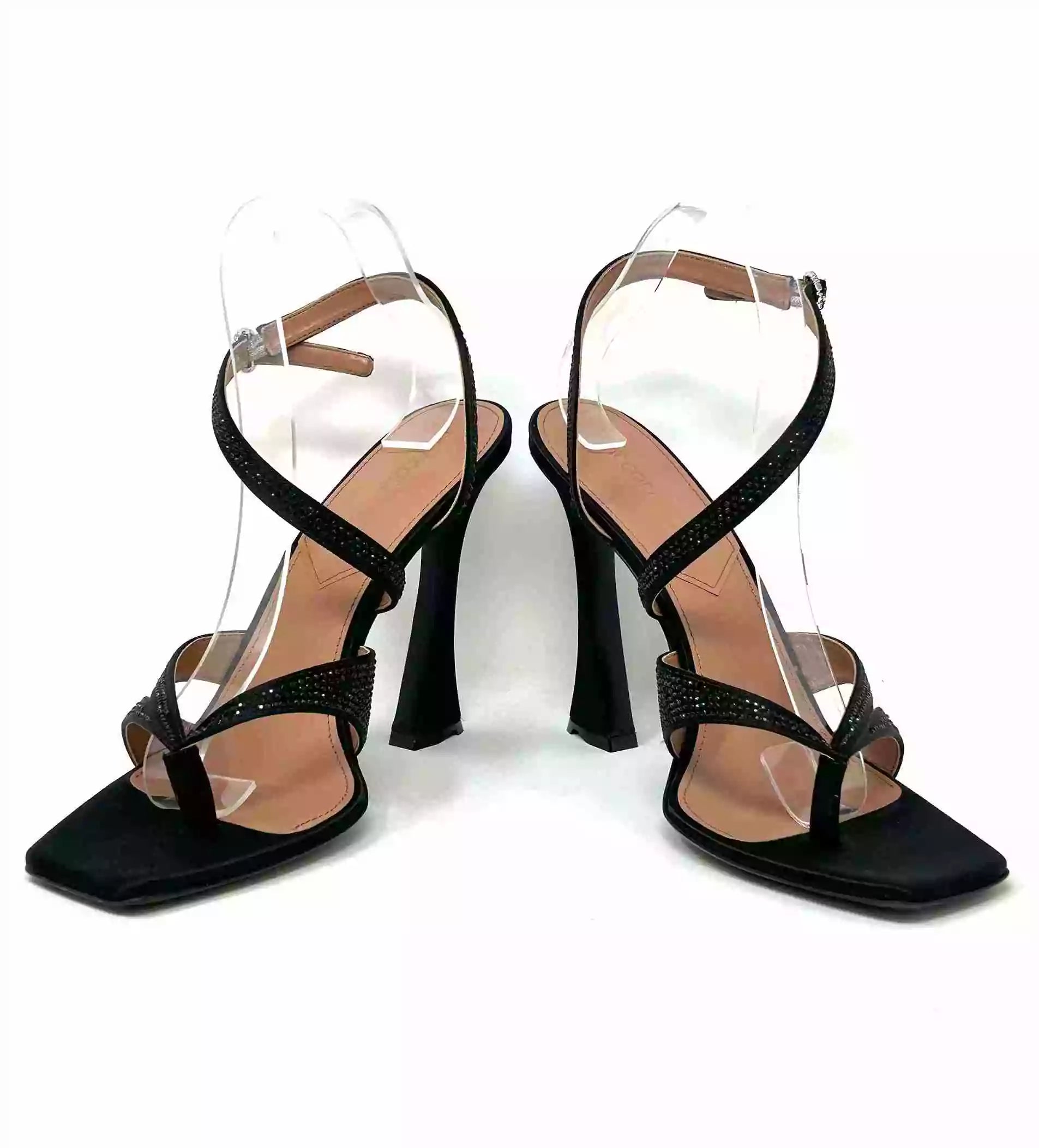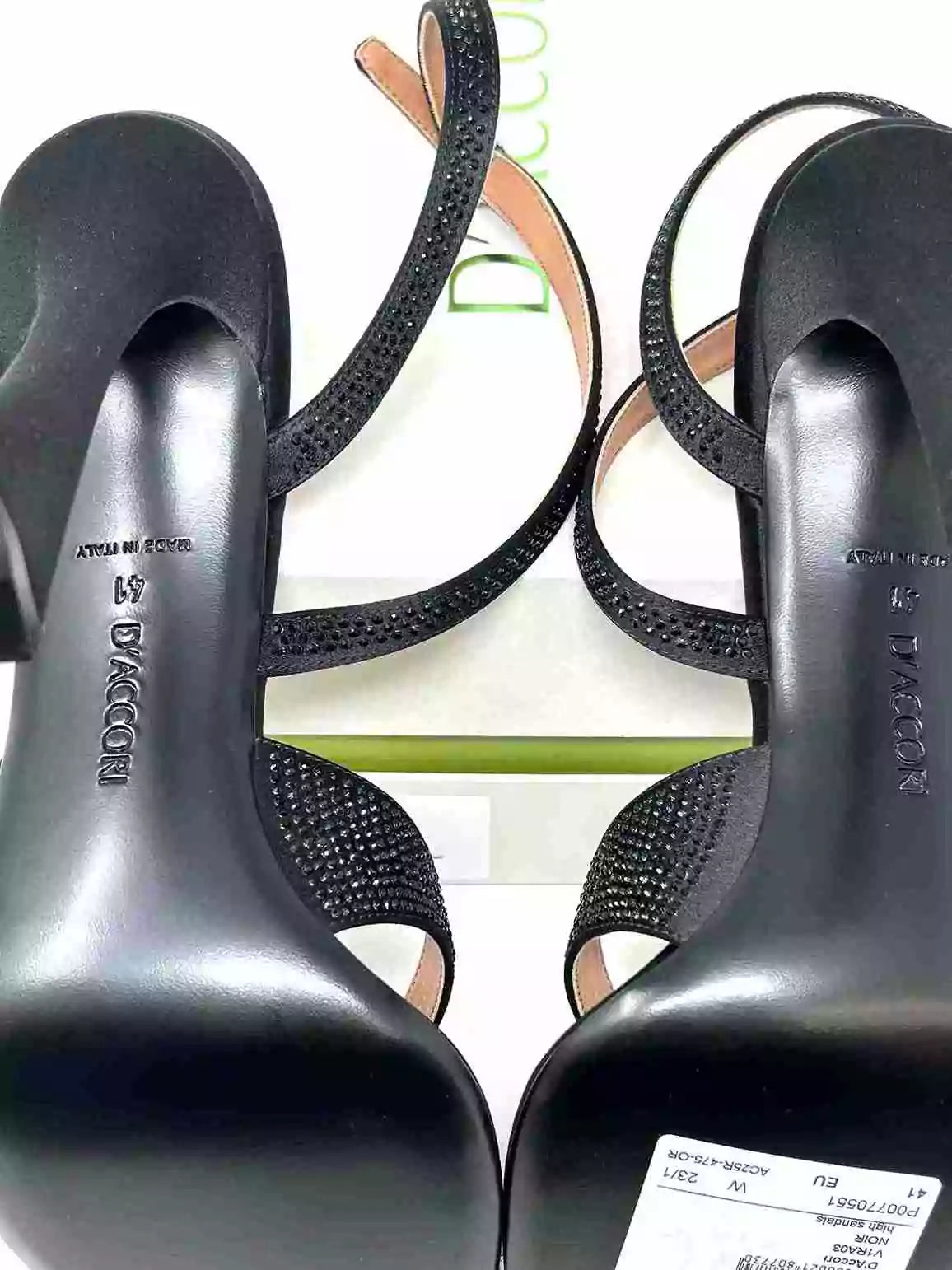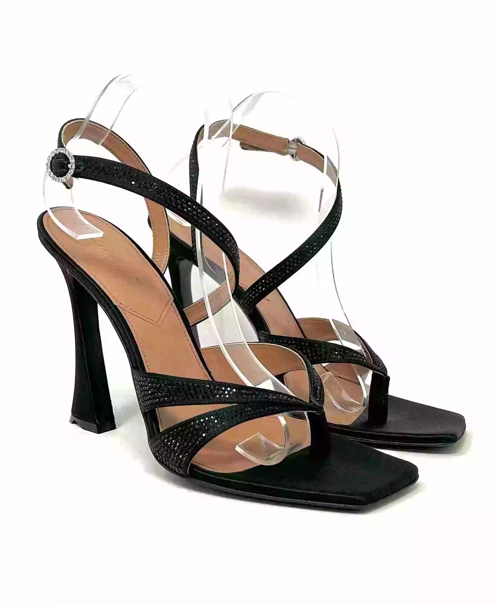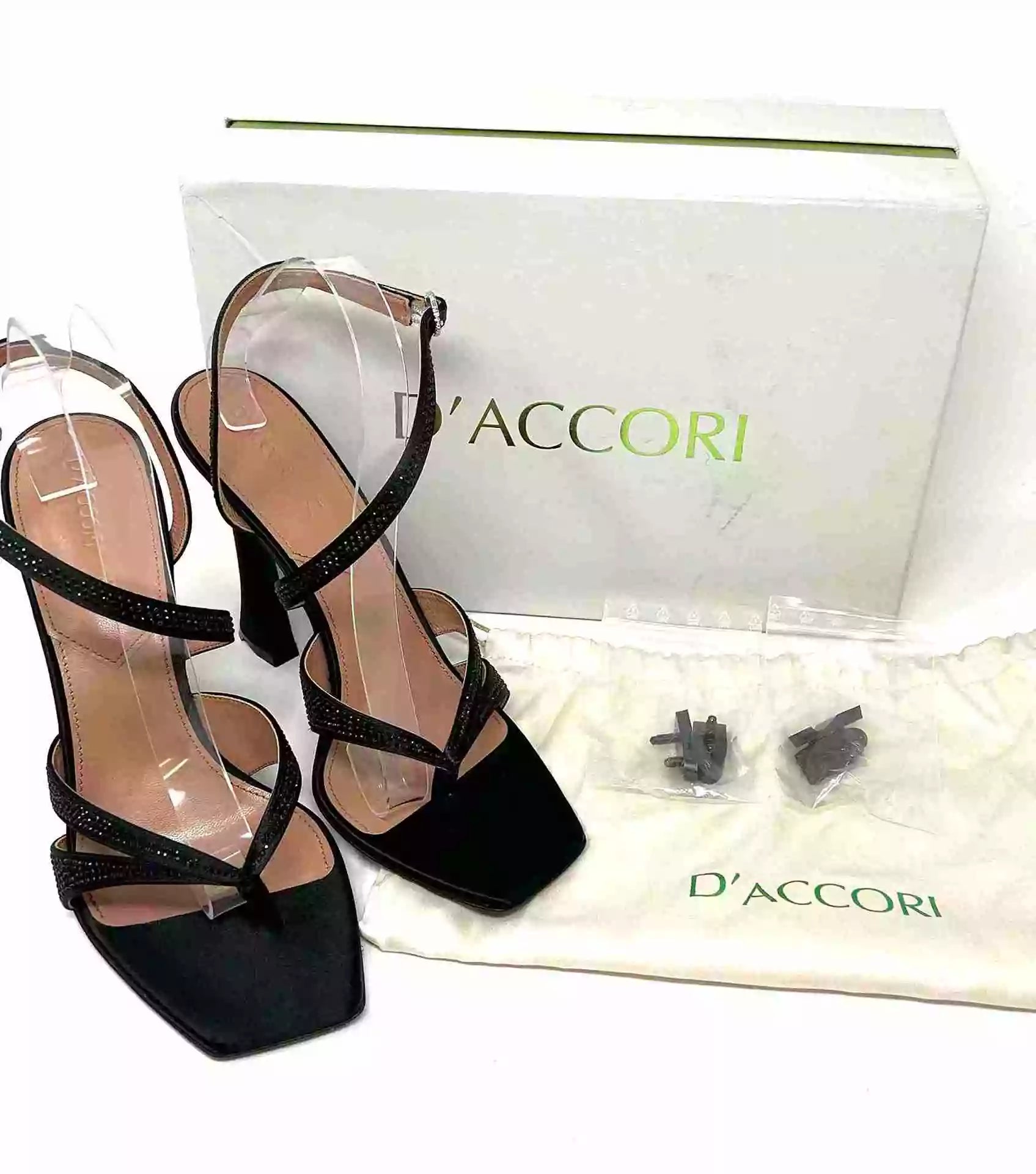 D’Accori Black Raya 100 Crystal Embellished Satin Heel Sandals 41 UK 8