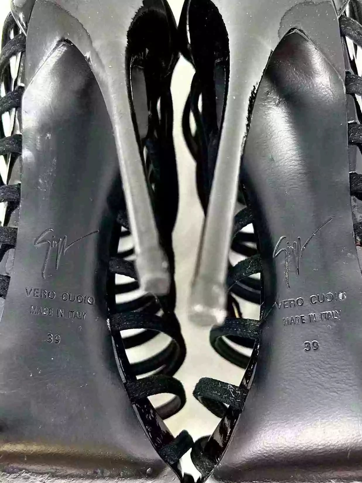 Giuseppe Zanotti Priscilla Black Suede And Patent Leather Gladiator Heels Sandals 39 UK 6