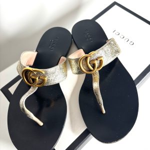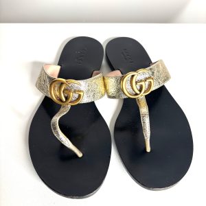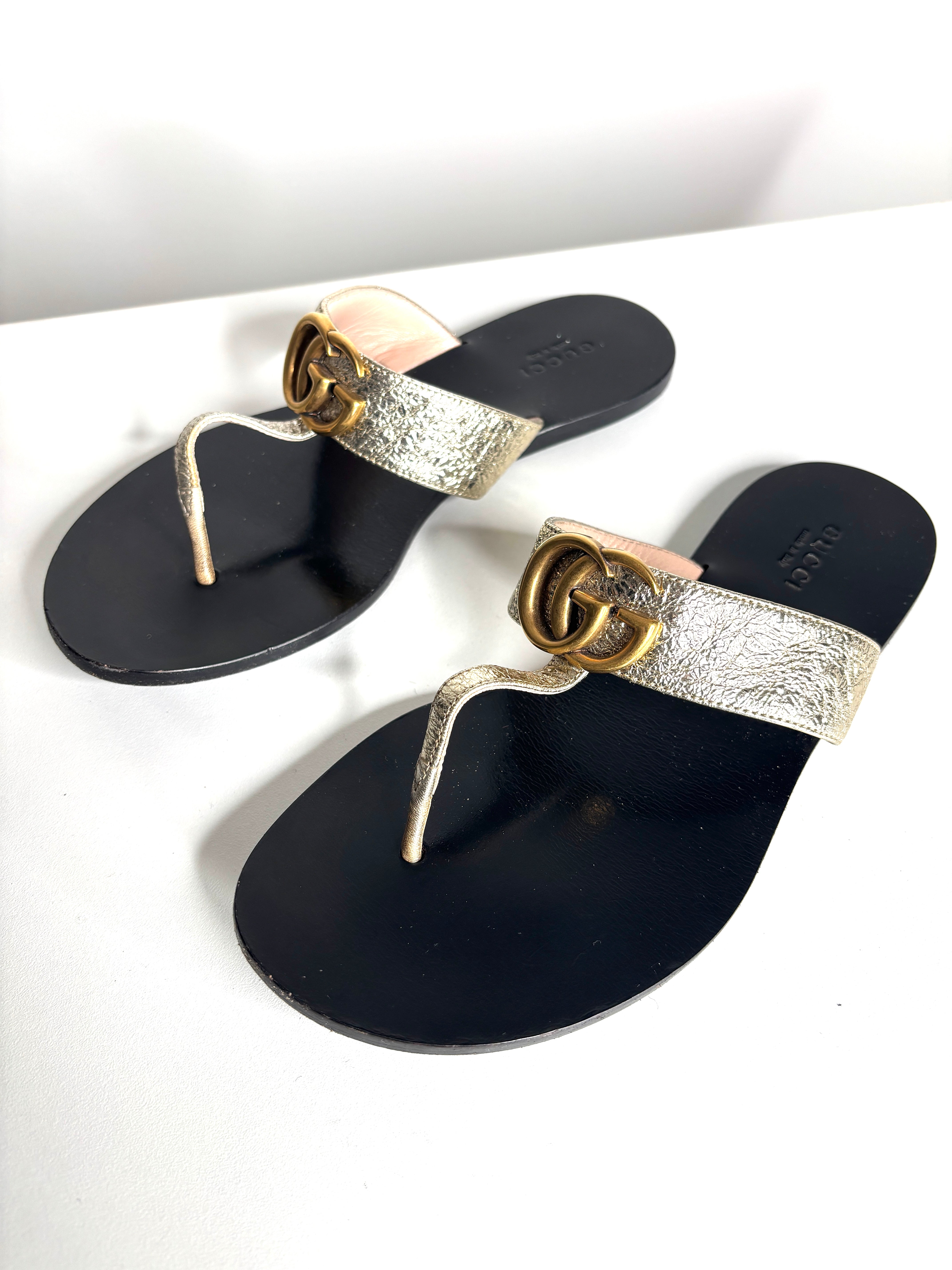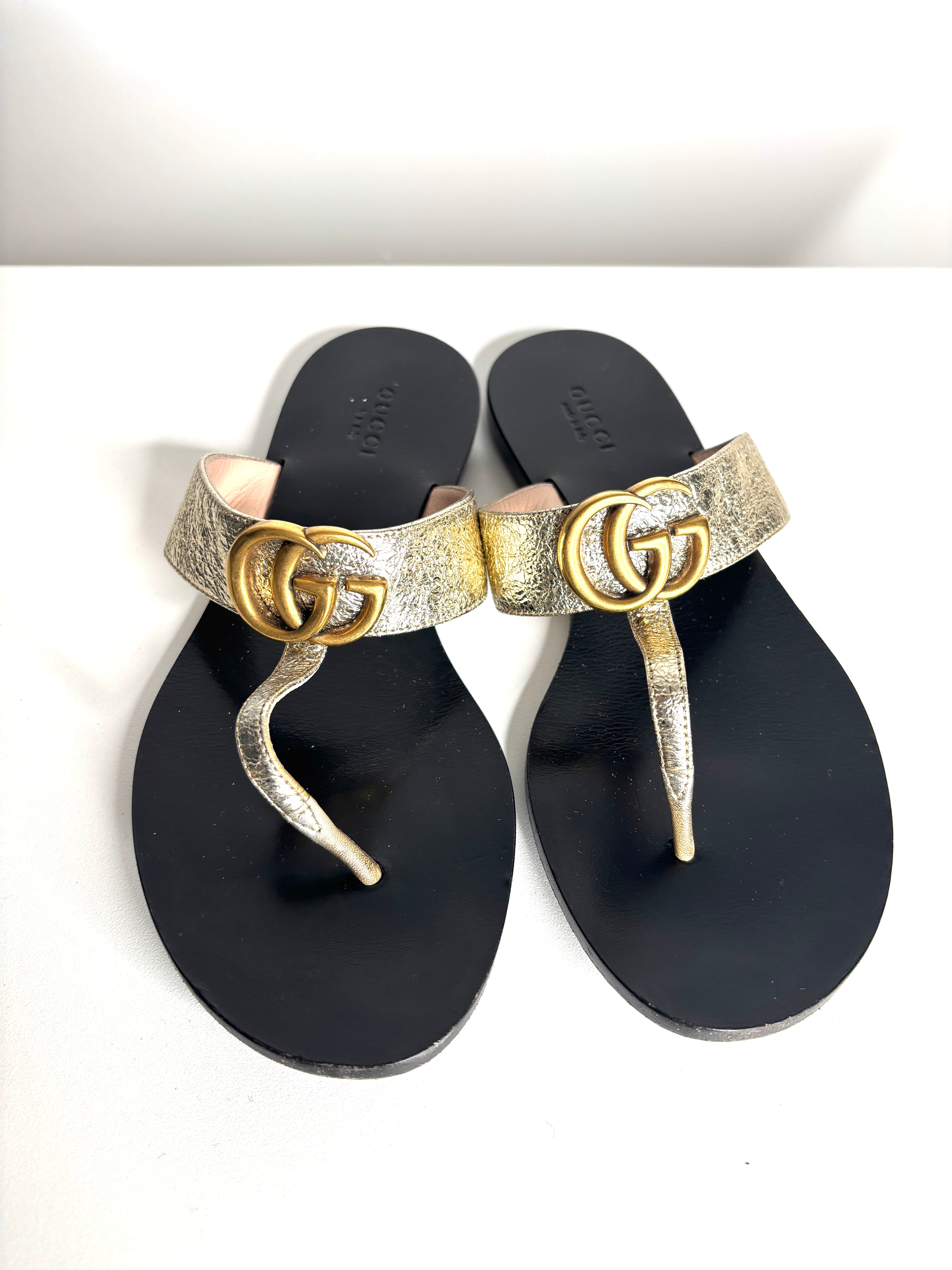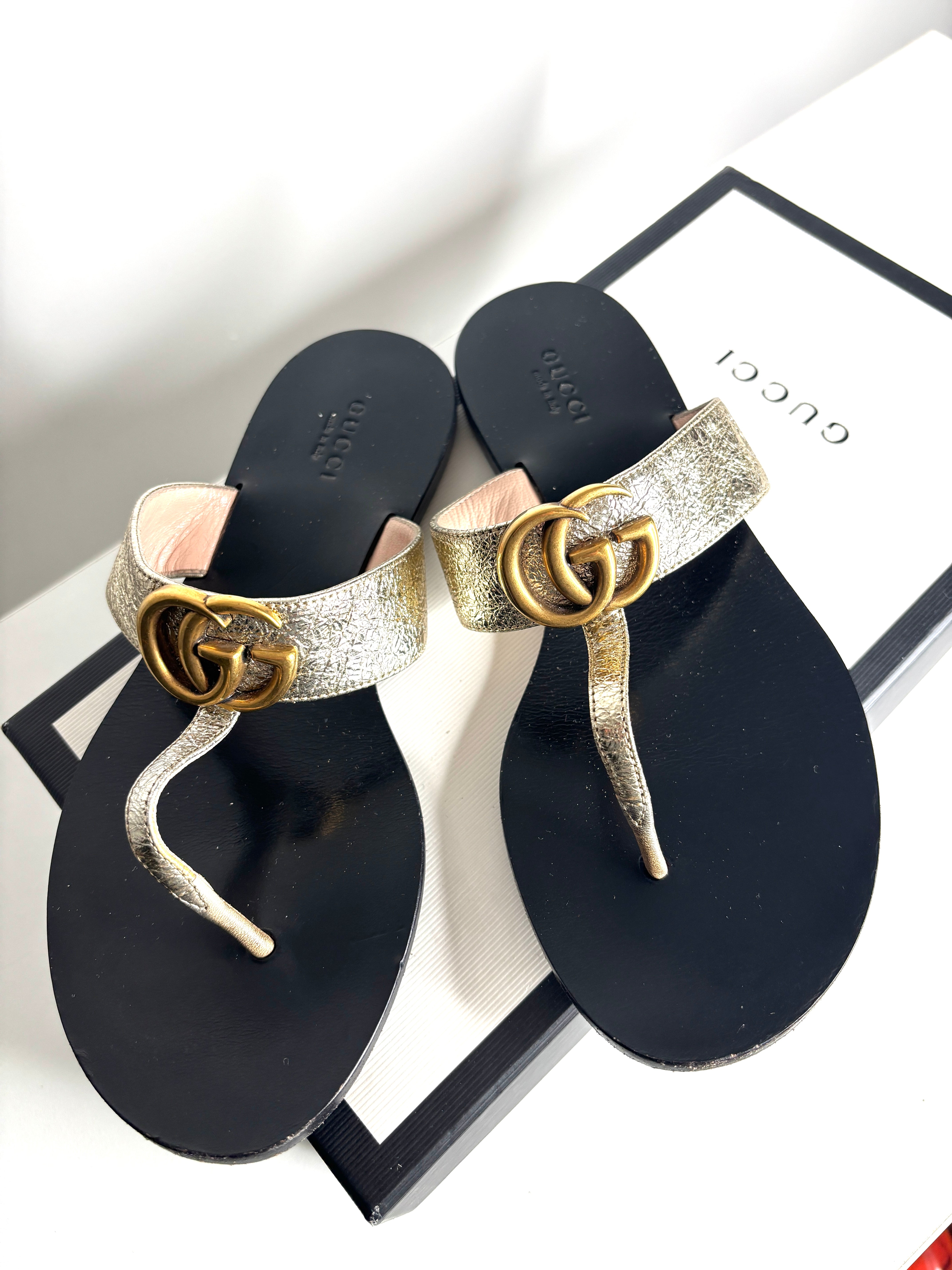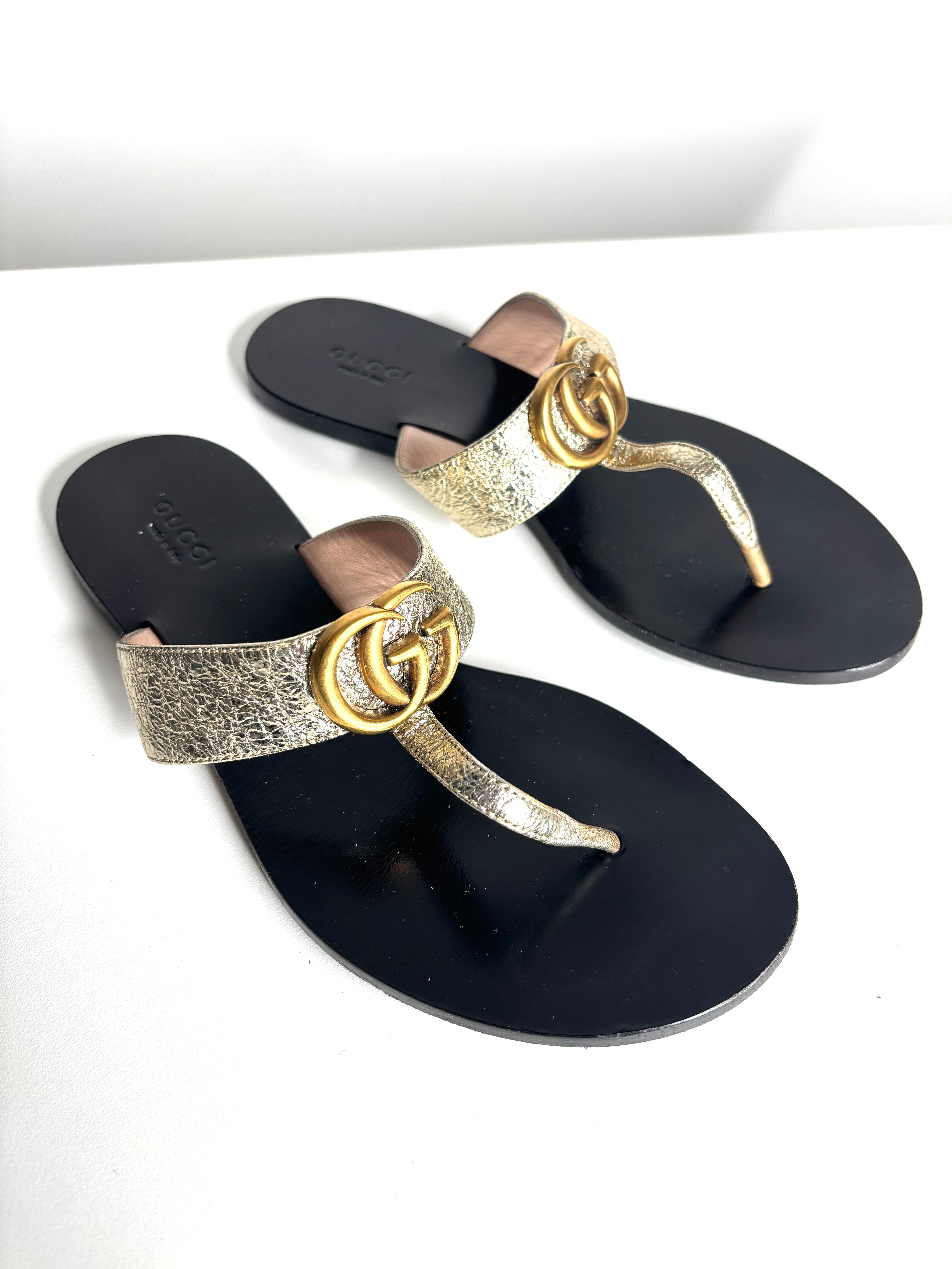 Gucci Marmont GG Gold Leather Thong Sandals 36.5 UK3.5