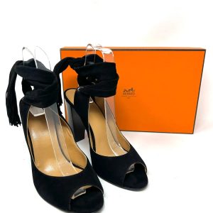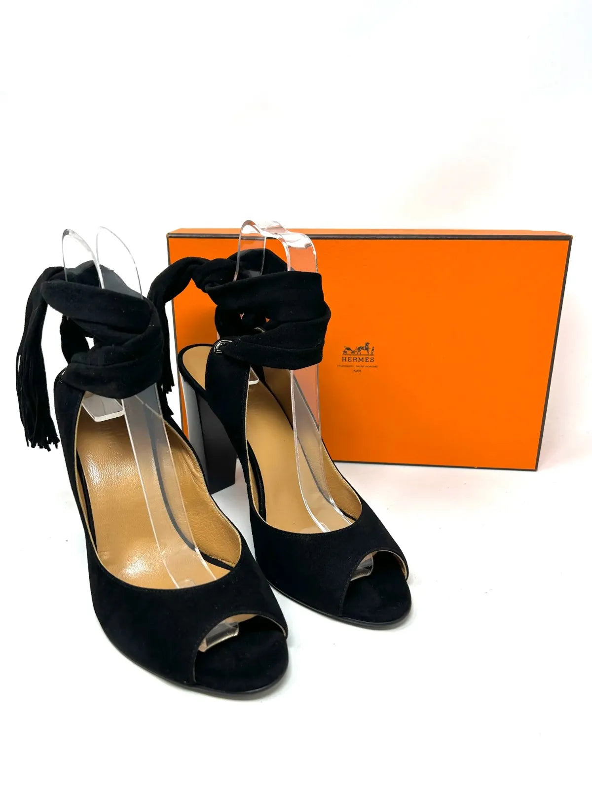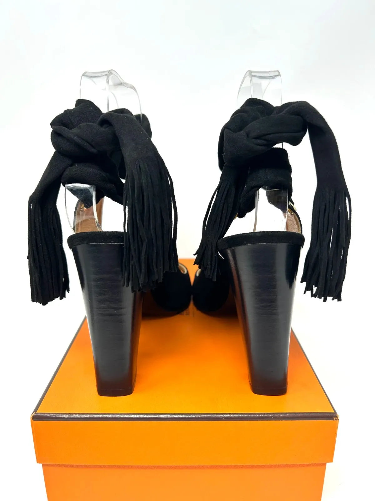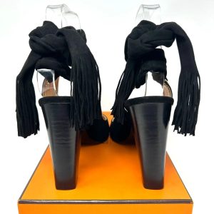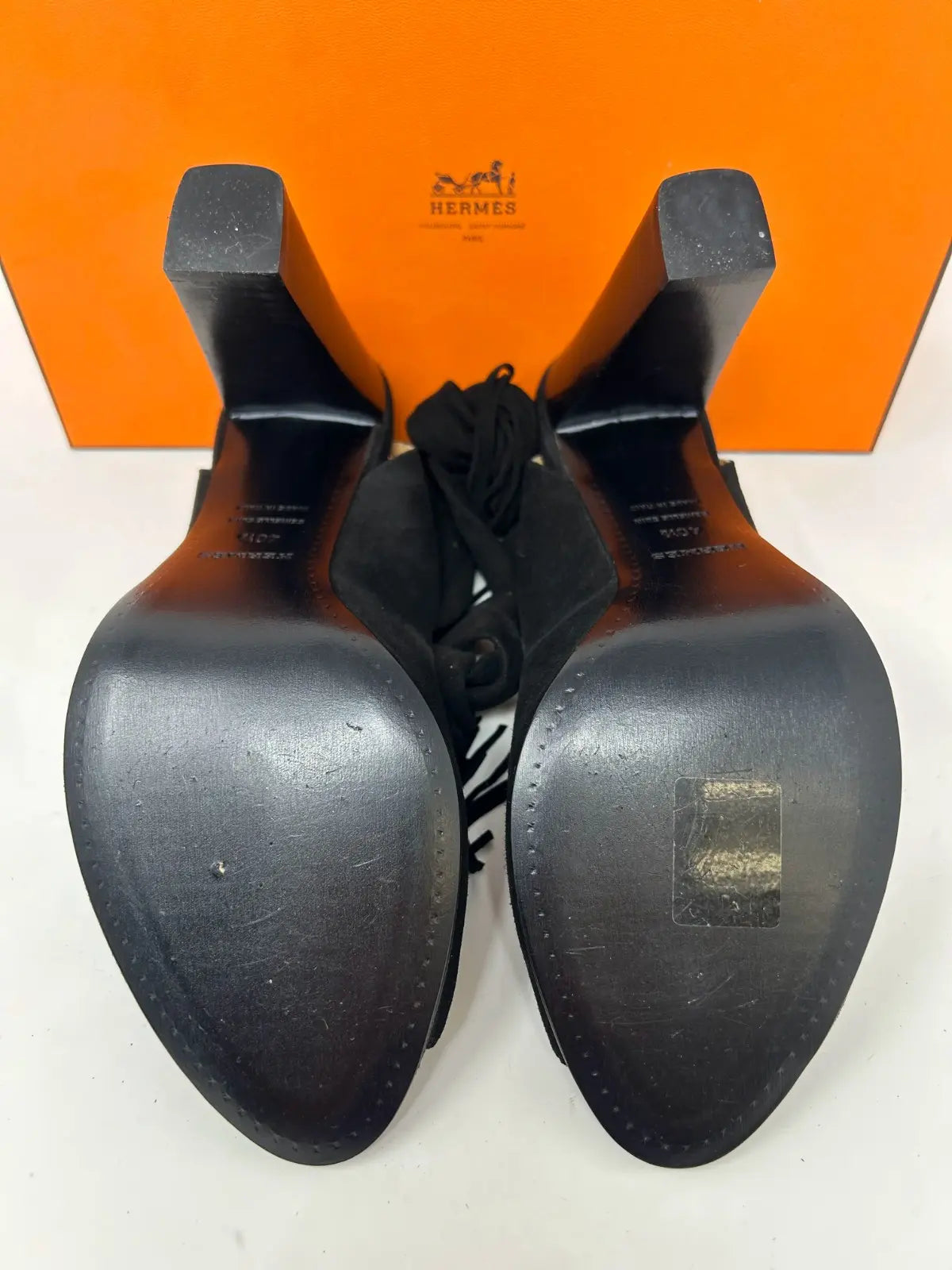 Hermes Black Suede Sandals With Tie Detail 40.5 UK 7.5 Preloved