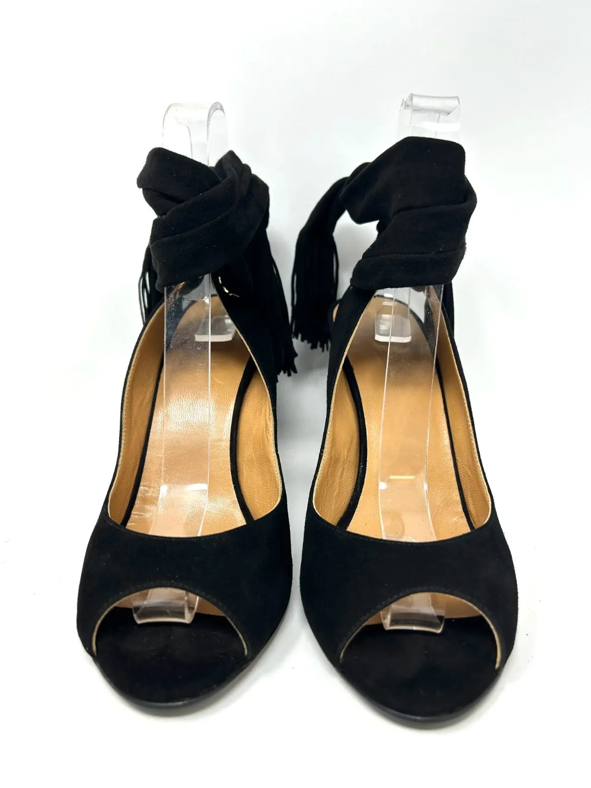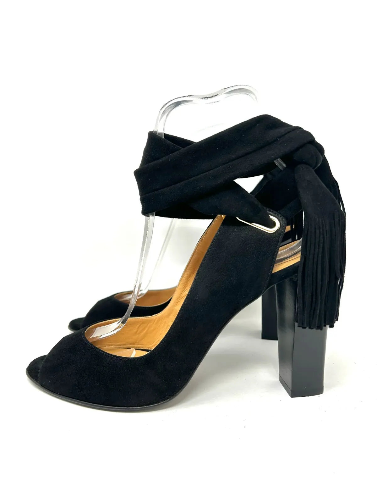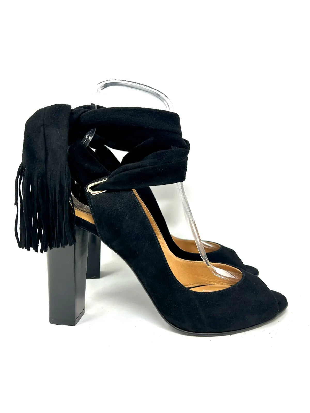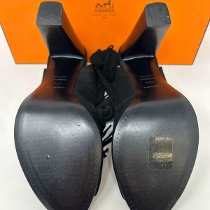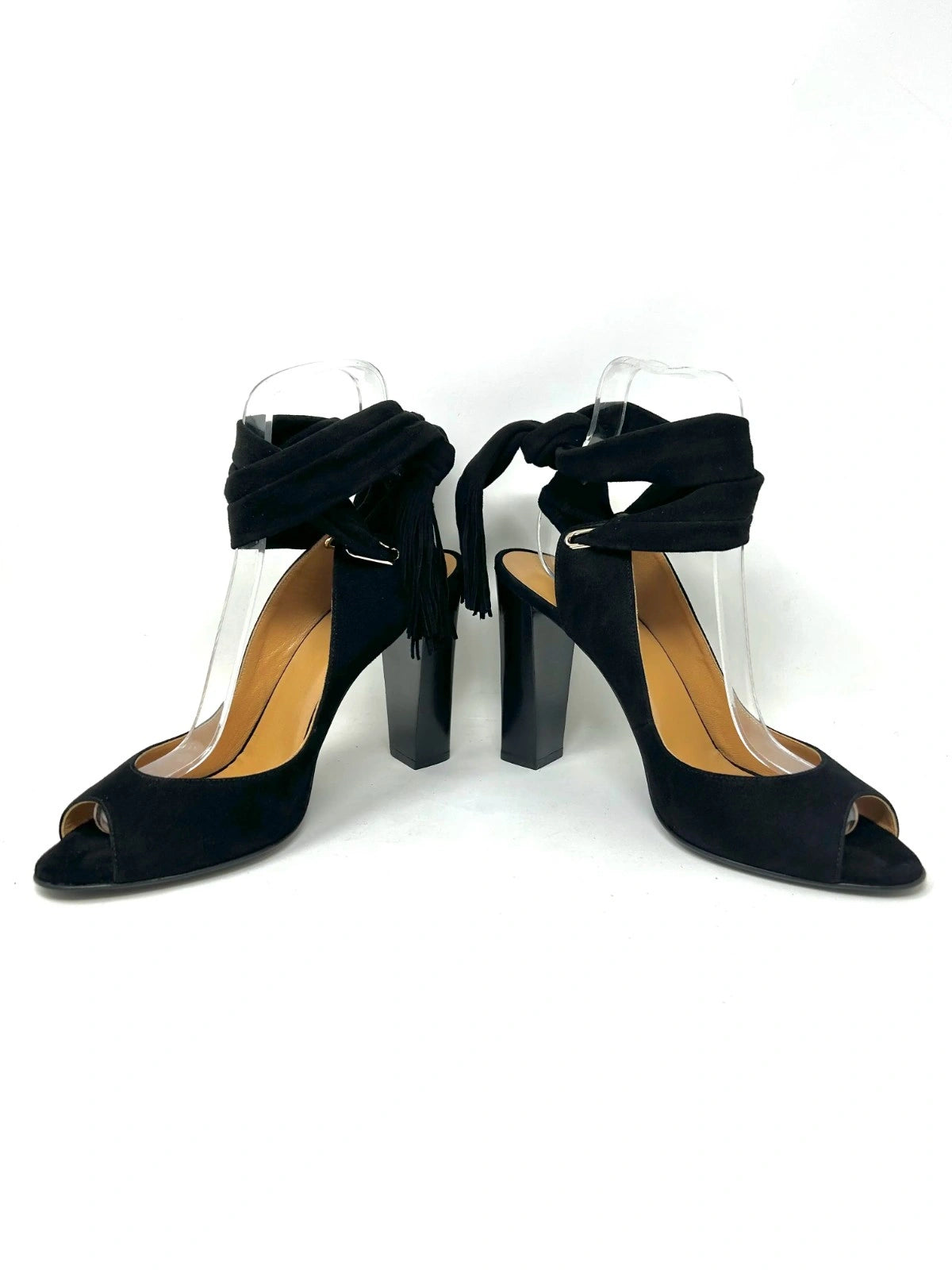 Hermes Black Suede Sandals With Tie Detail 40.5 UK 7.5 Preloved