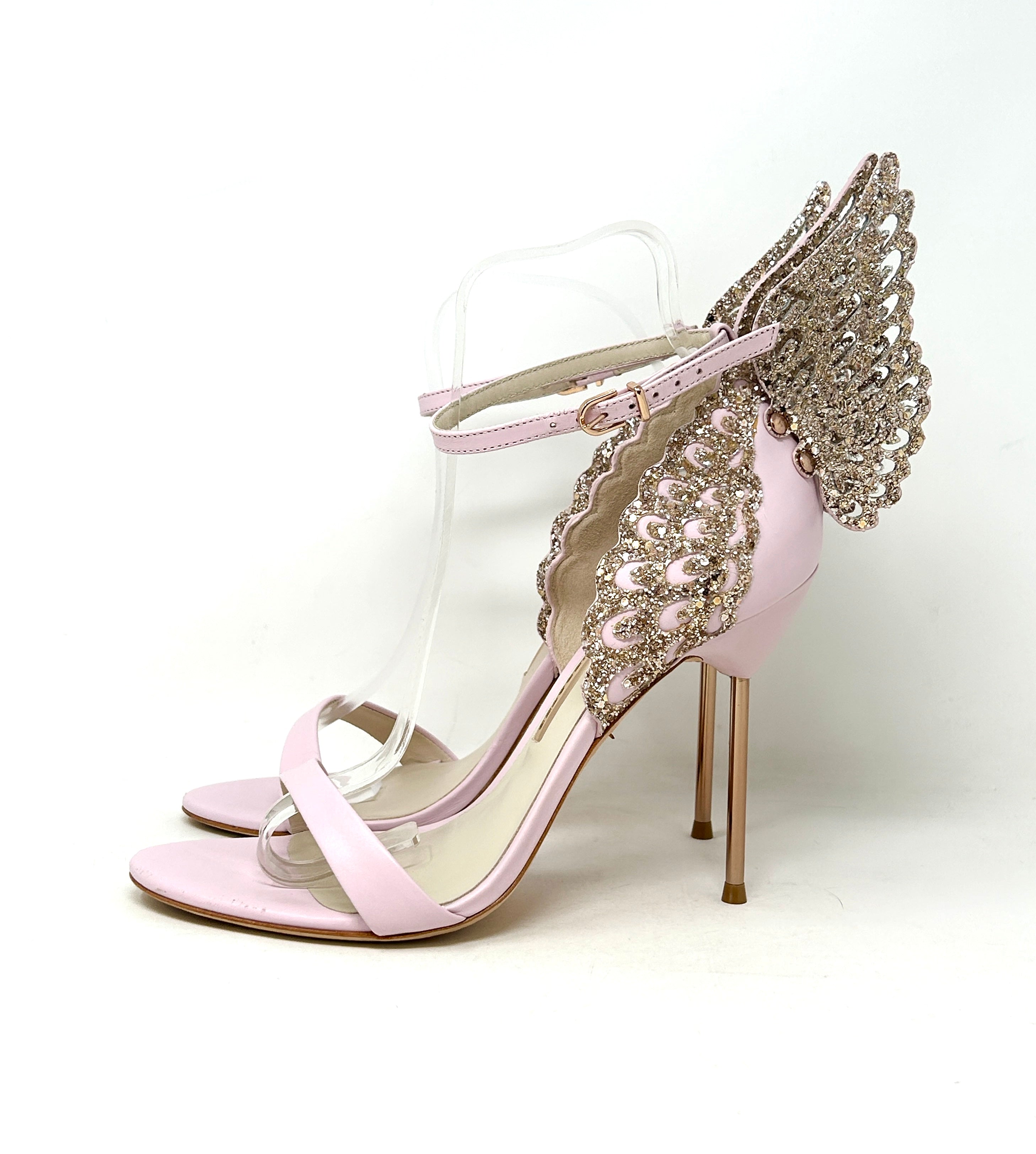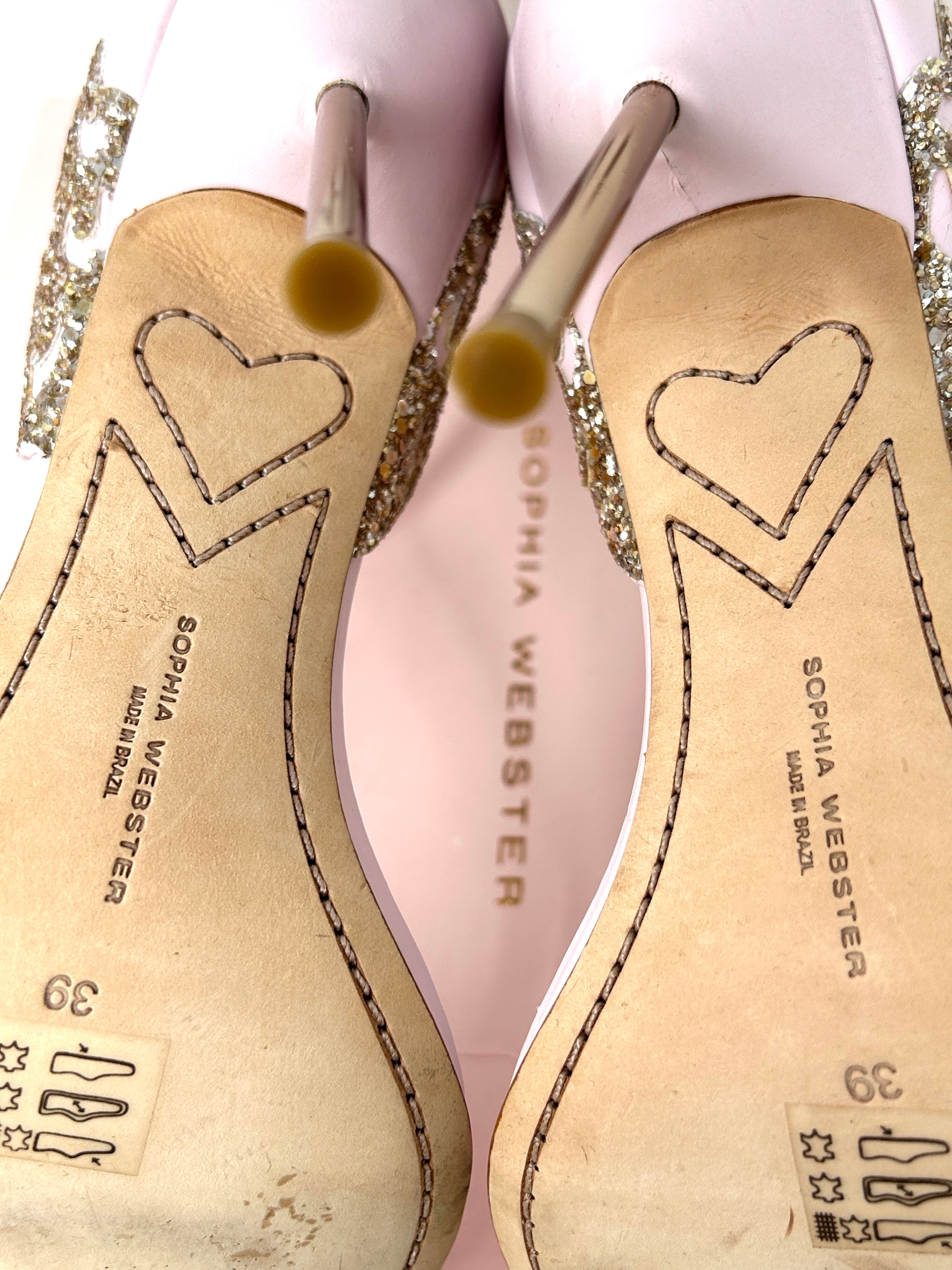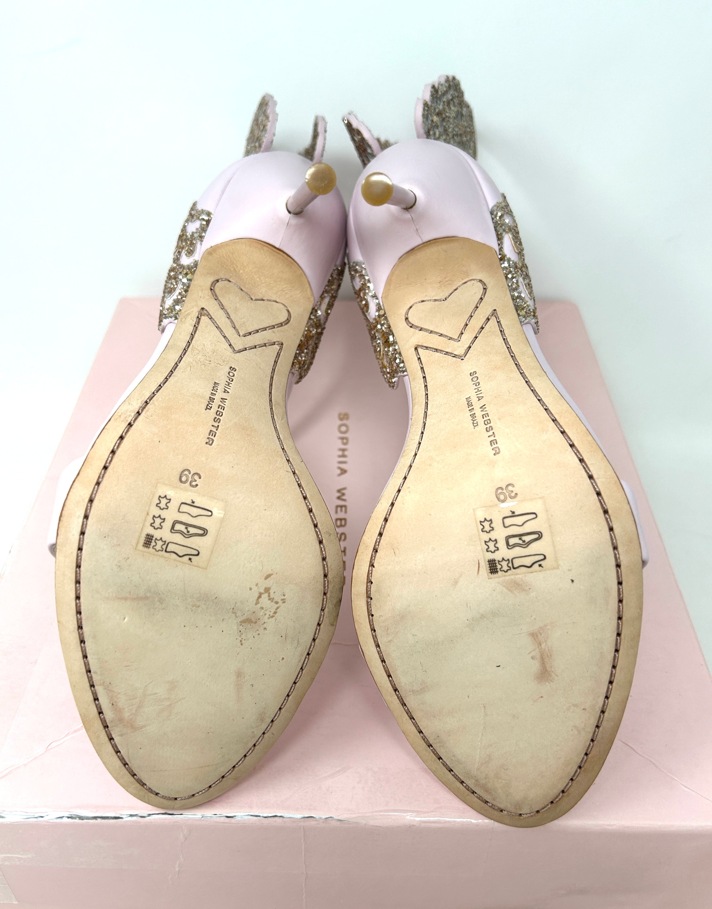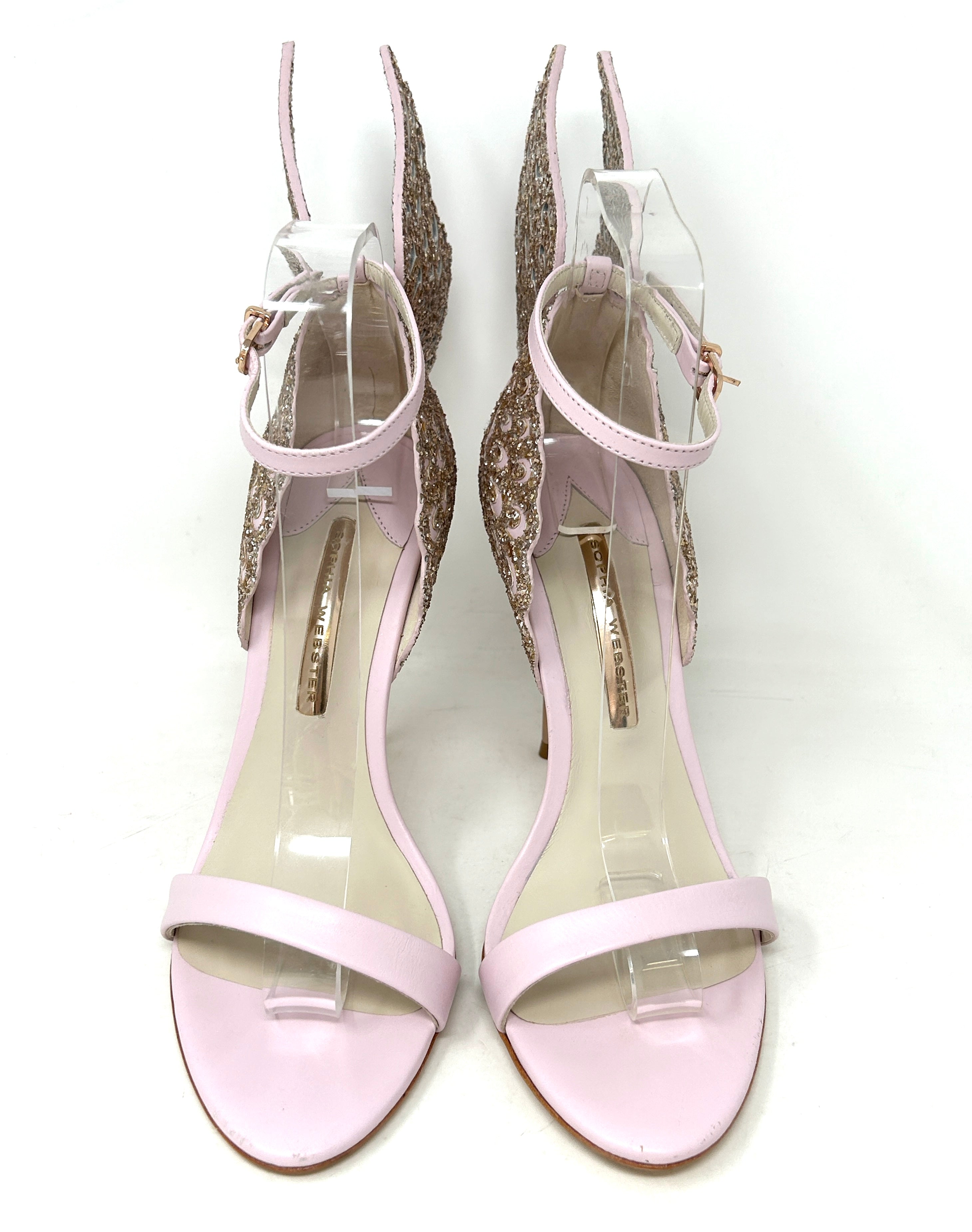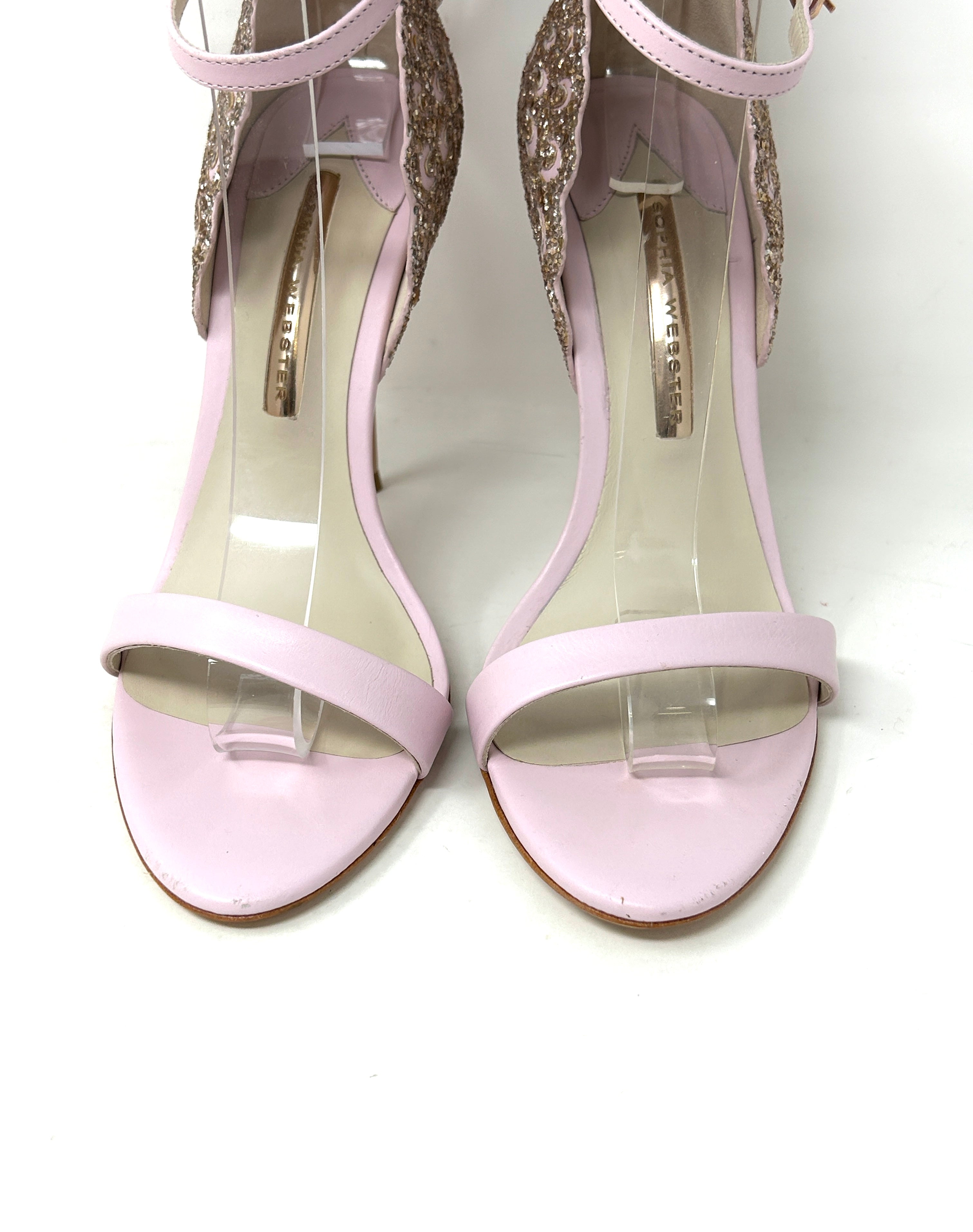 Sophia Webster Evangeline Light Pink Leather Glitter Wing Heel Sandals 39 UK 6