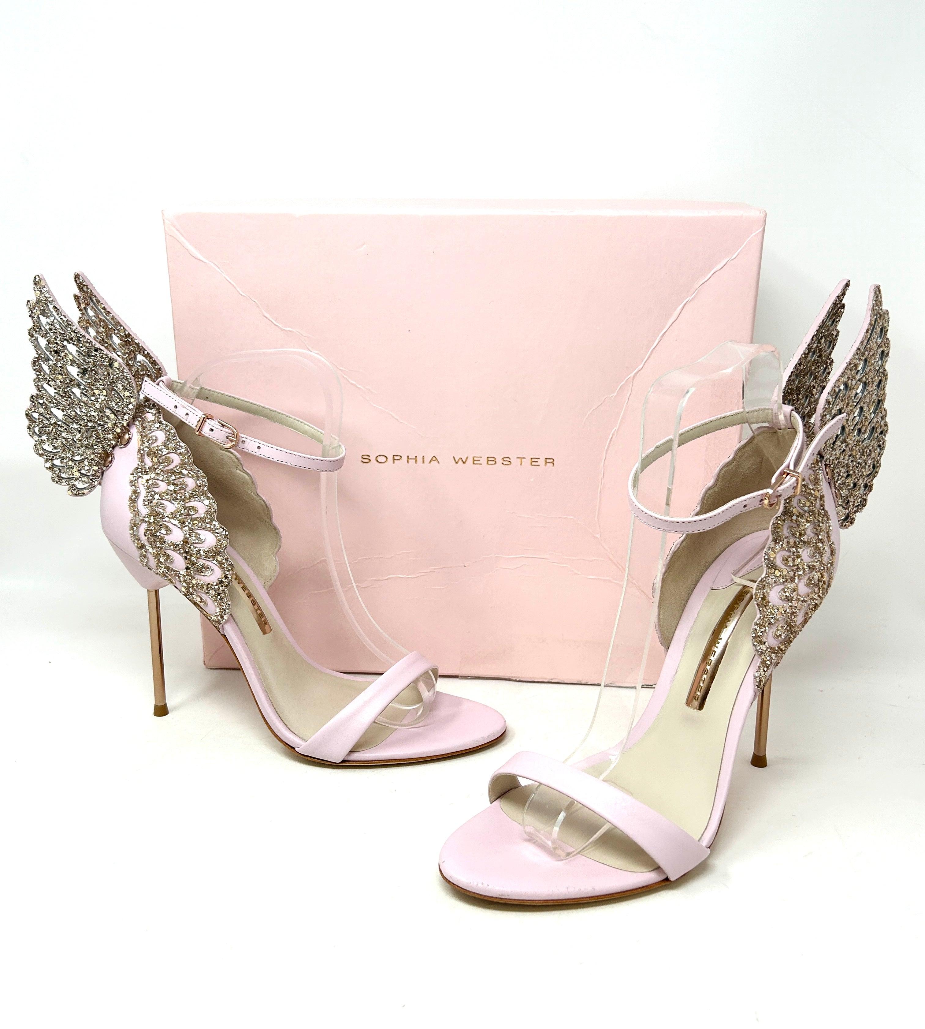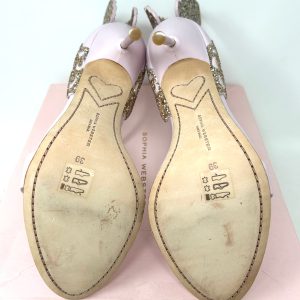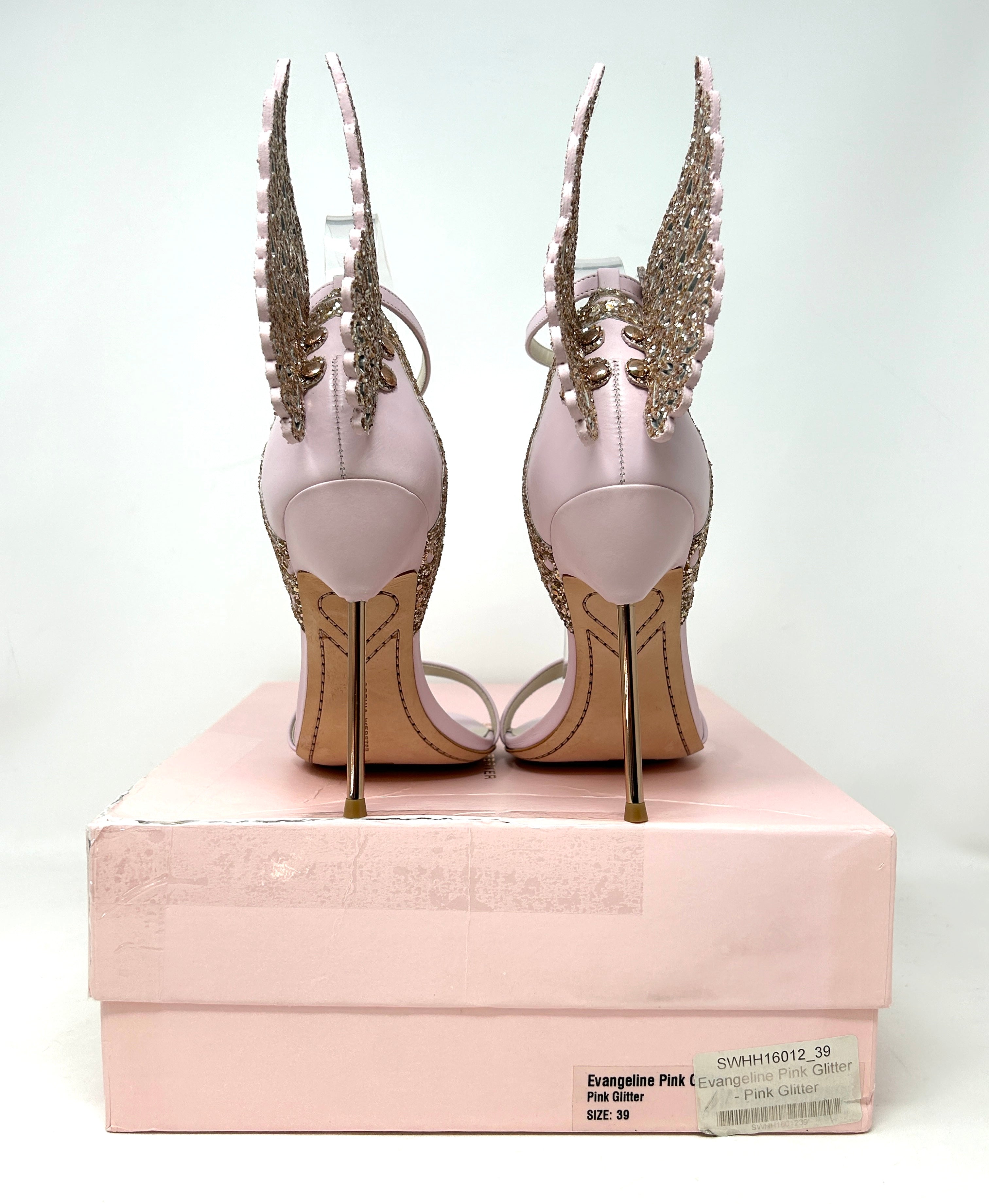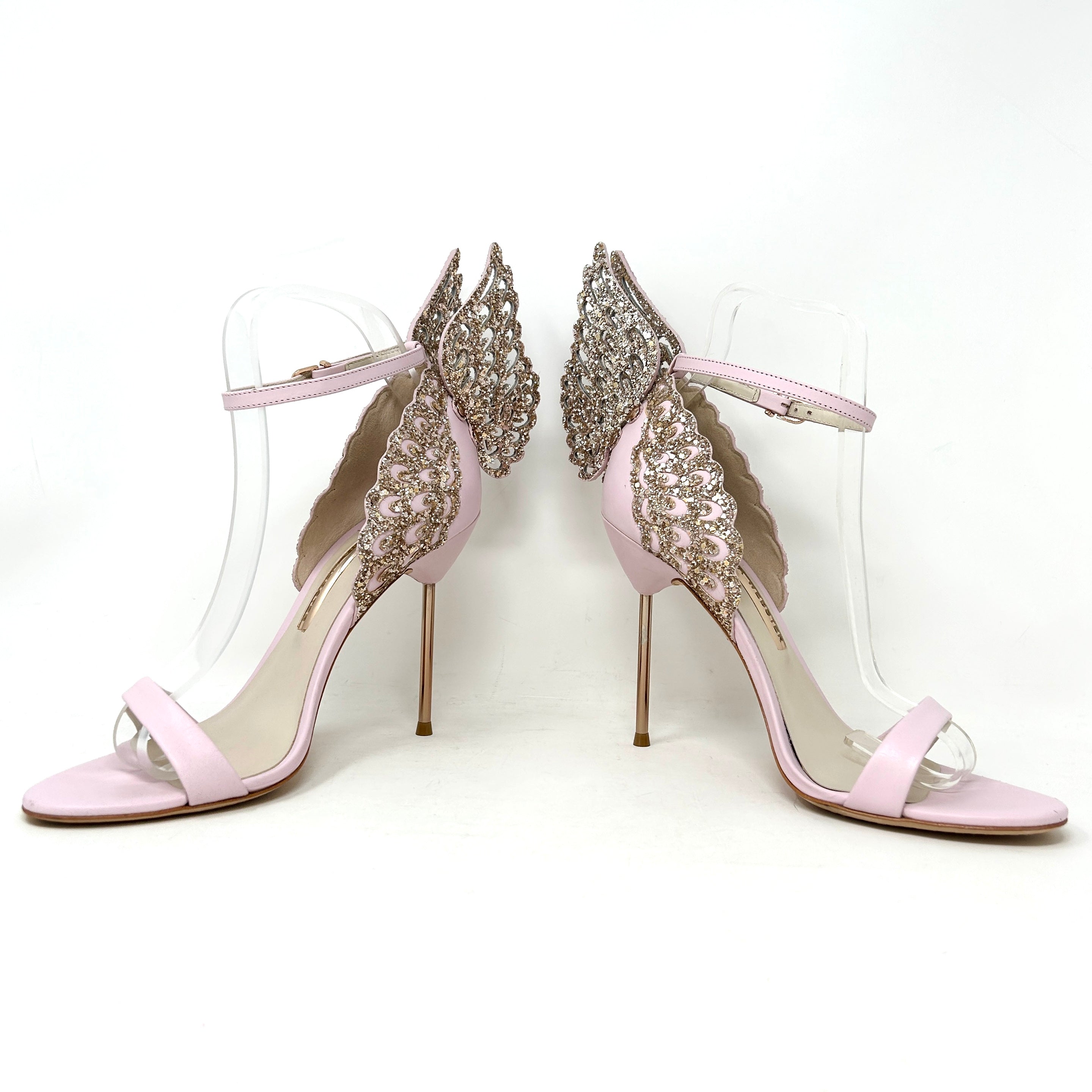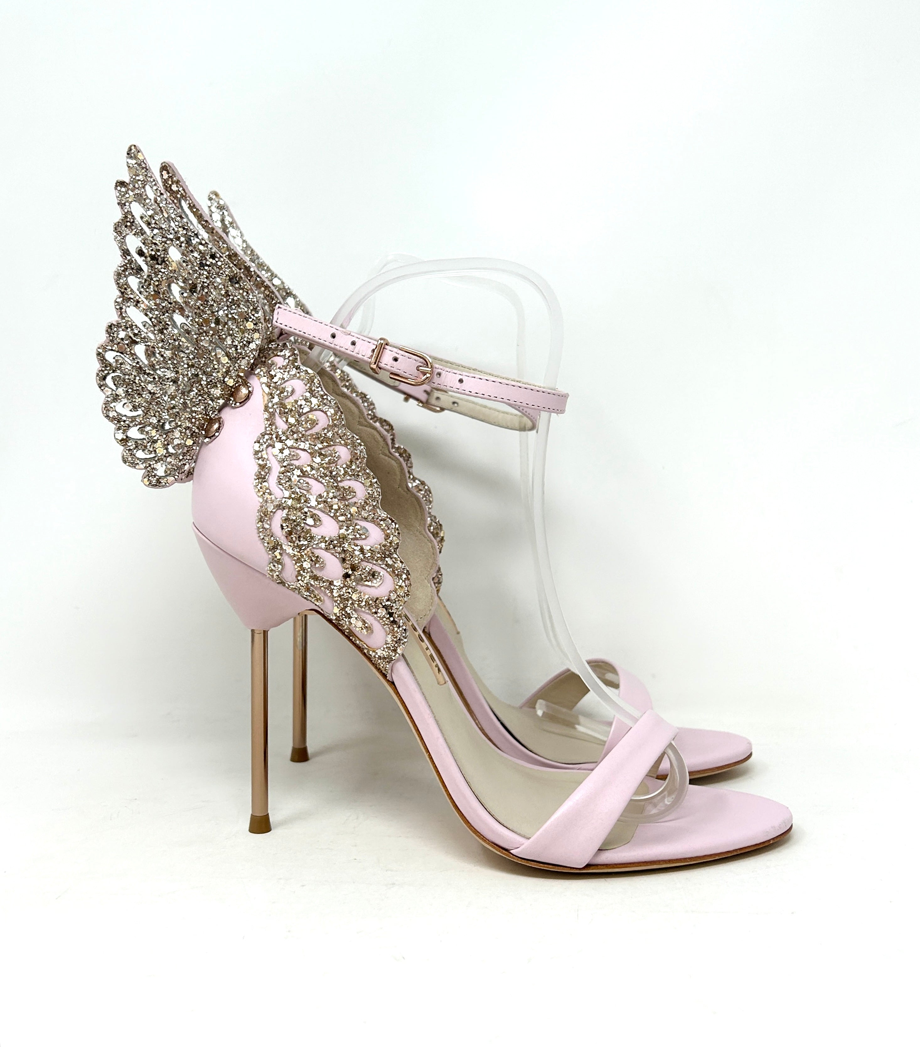 Sophia Webster Evangeline Light Pink Leather Glitter Wing Heel Sandals 39 UK 6