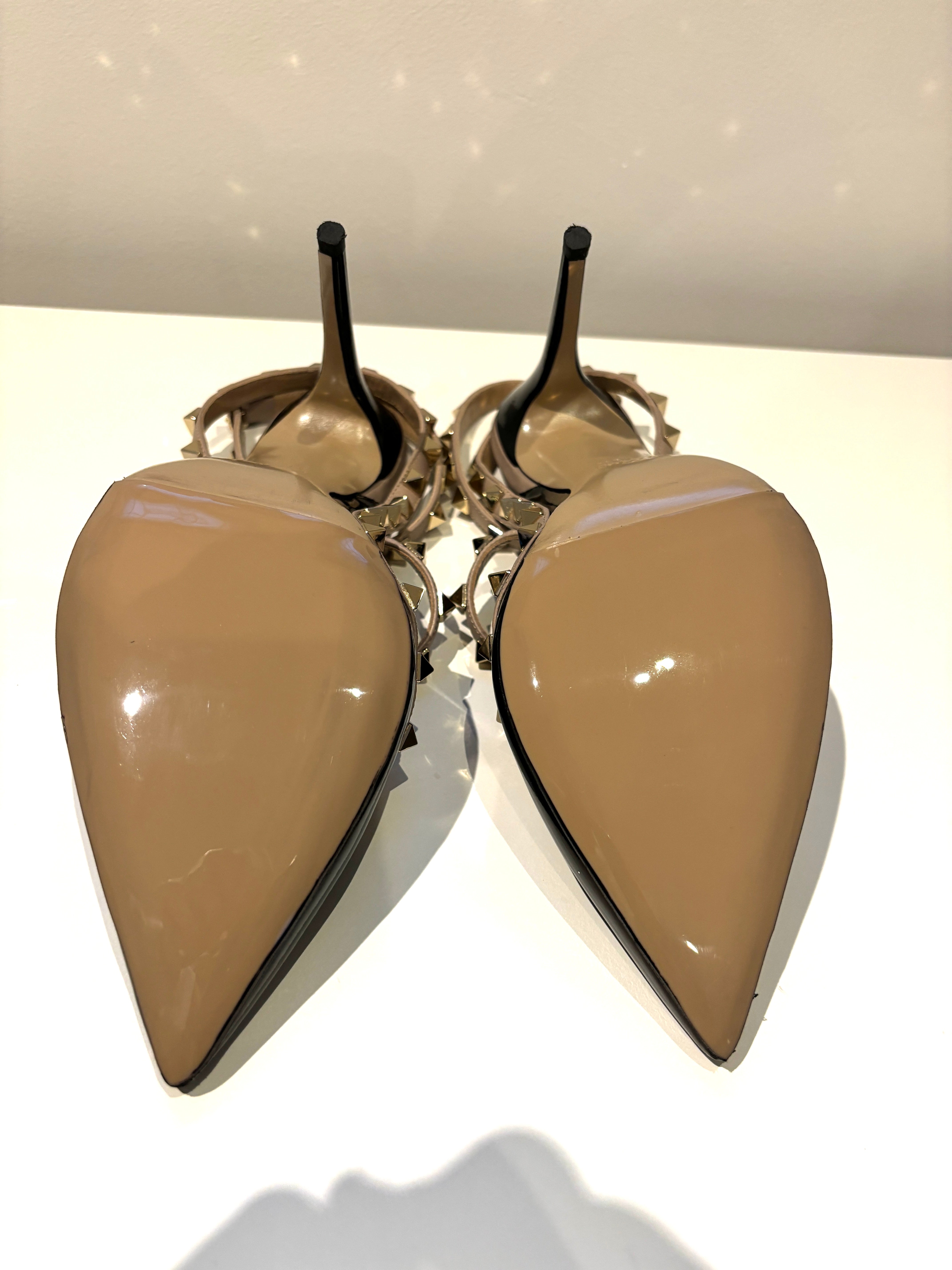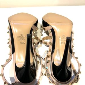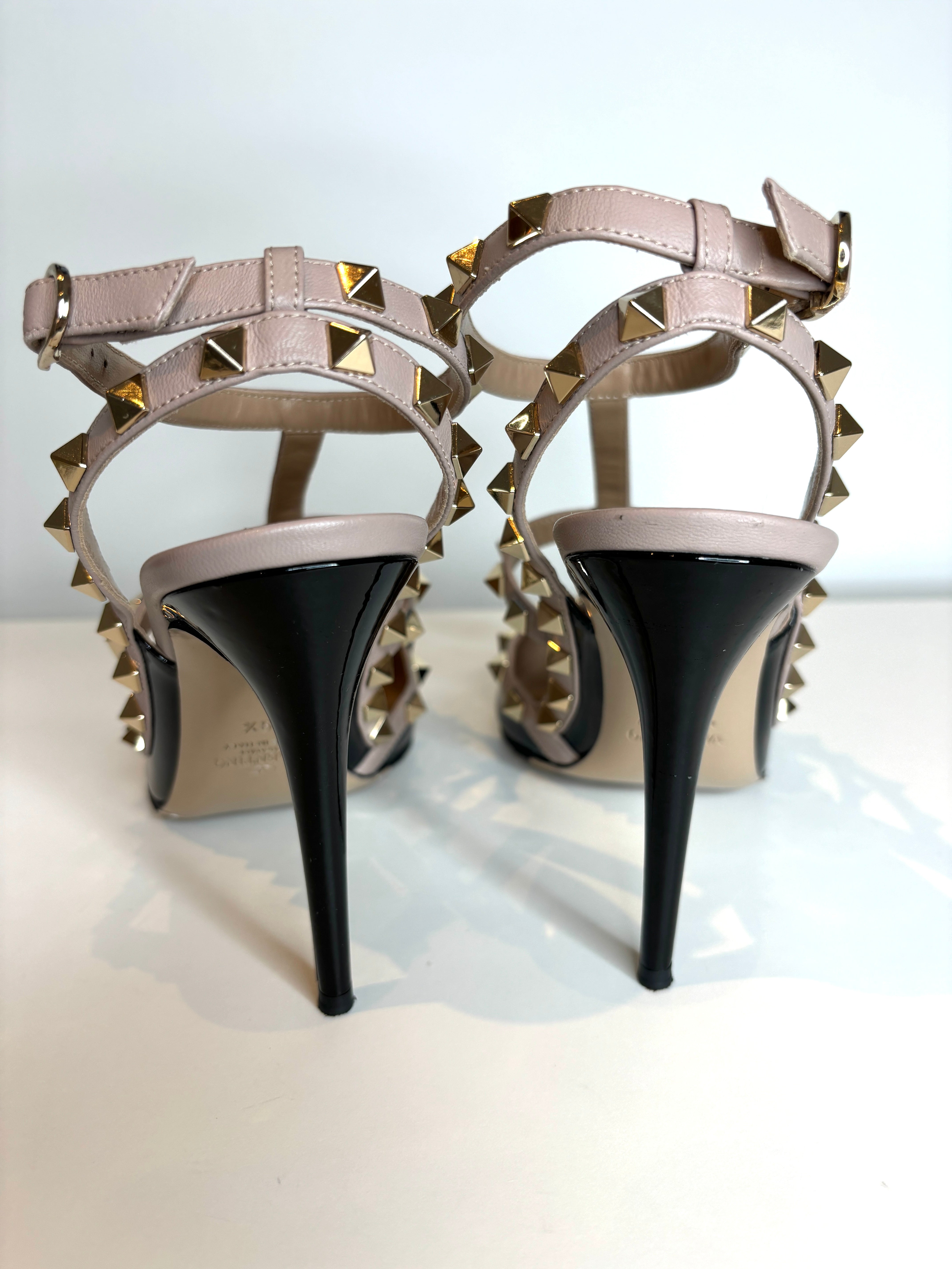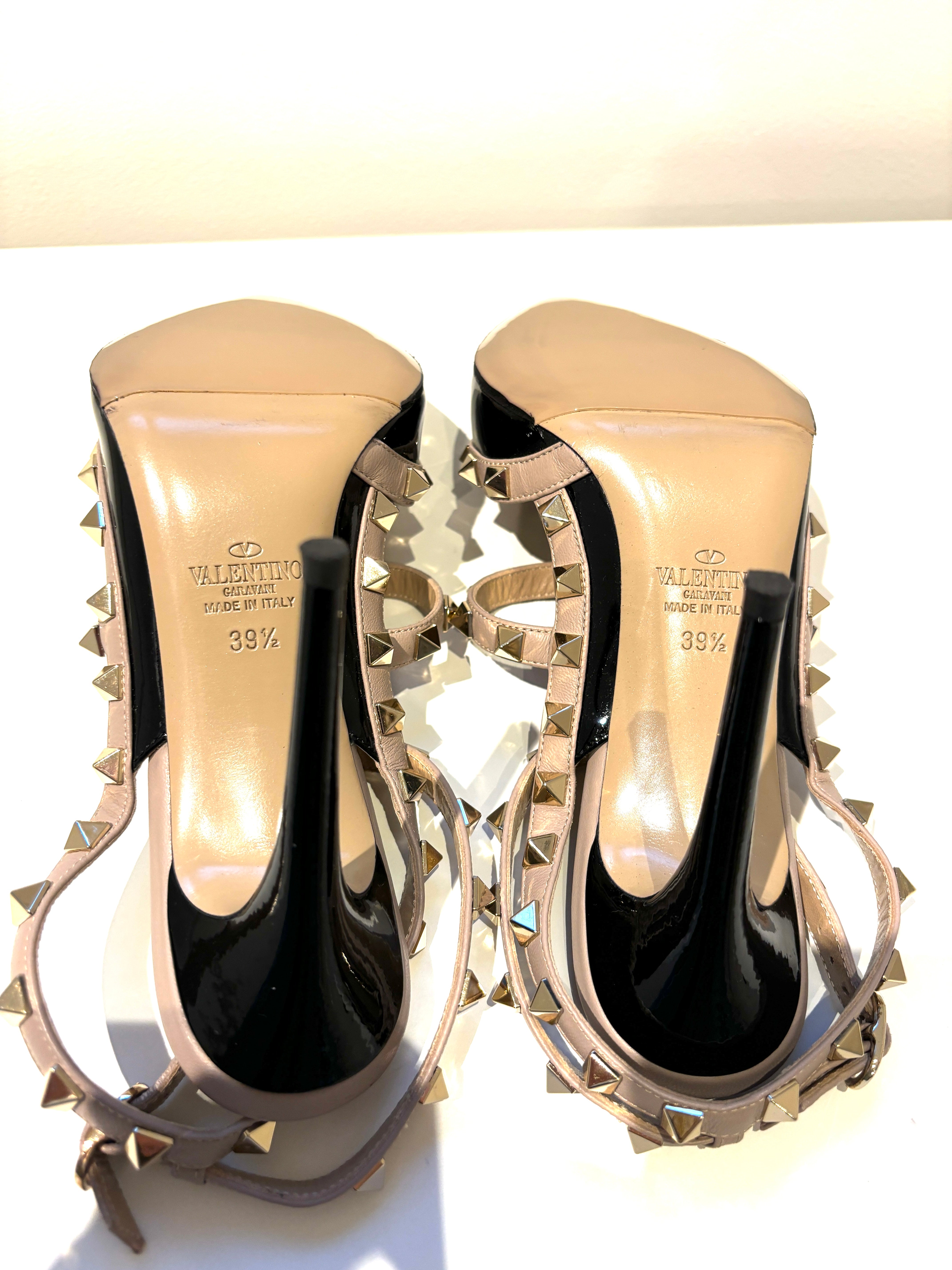 Valentino Garavani Rockstud 100 Black Patent Leather Sandals Heels 39.5 UK6.5